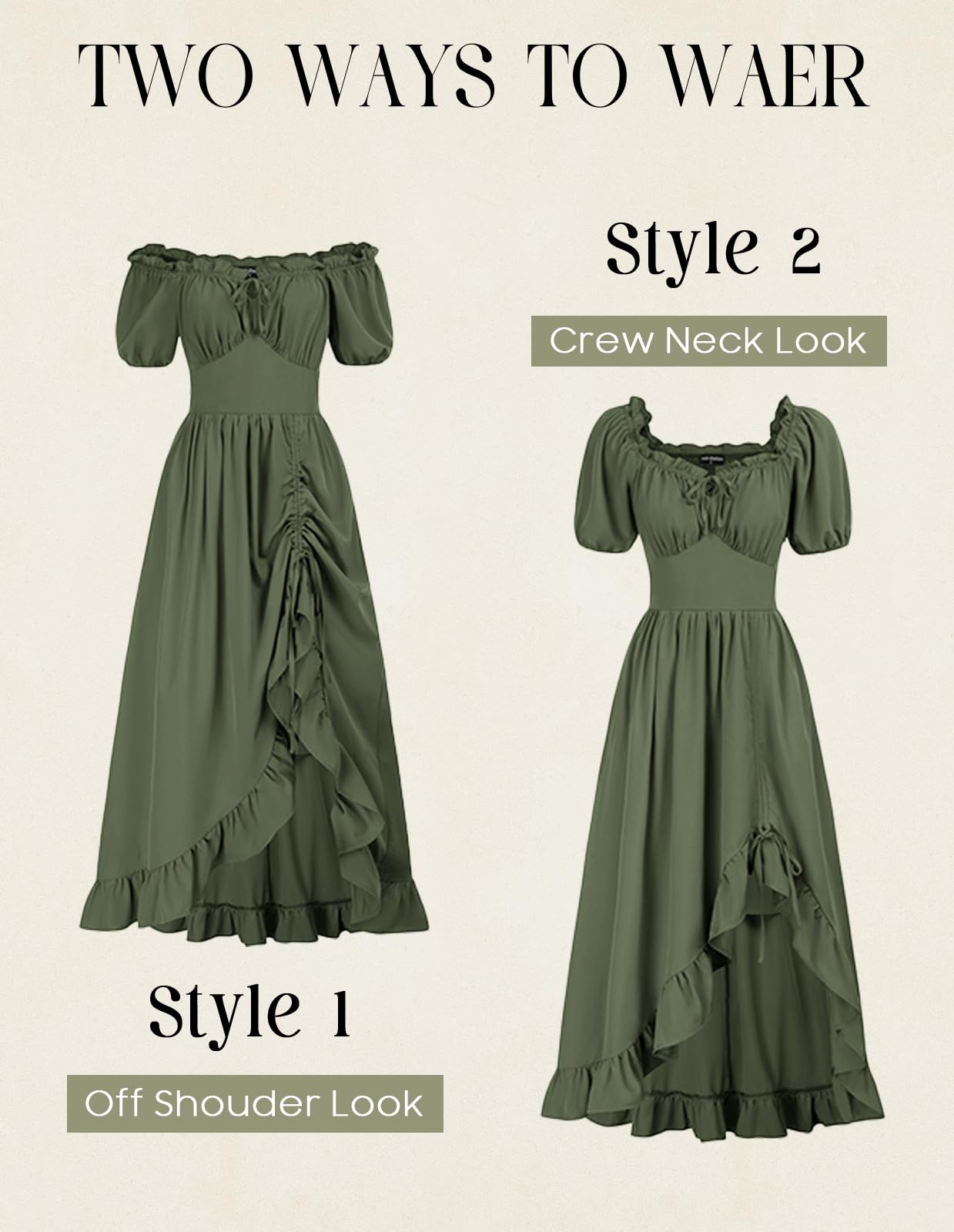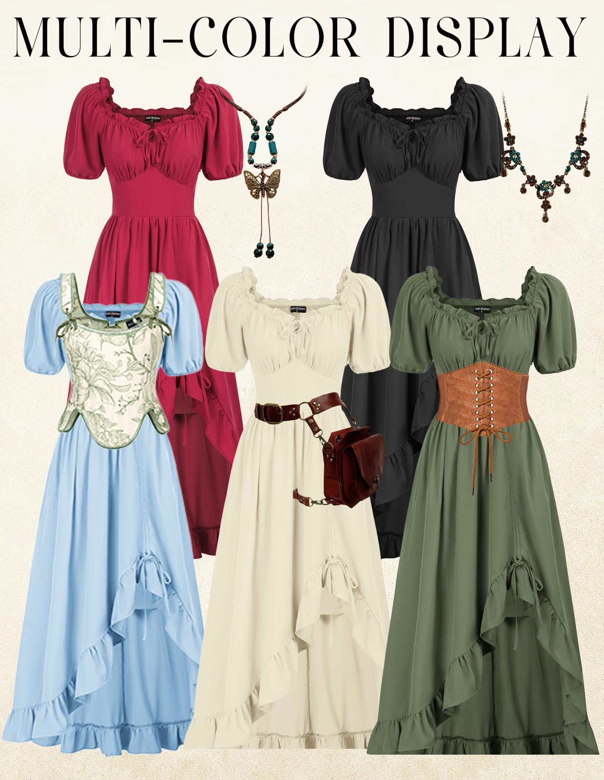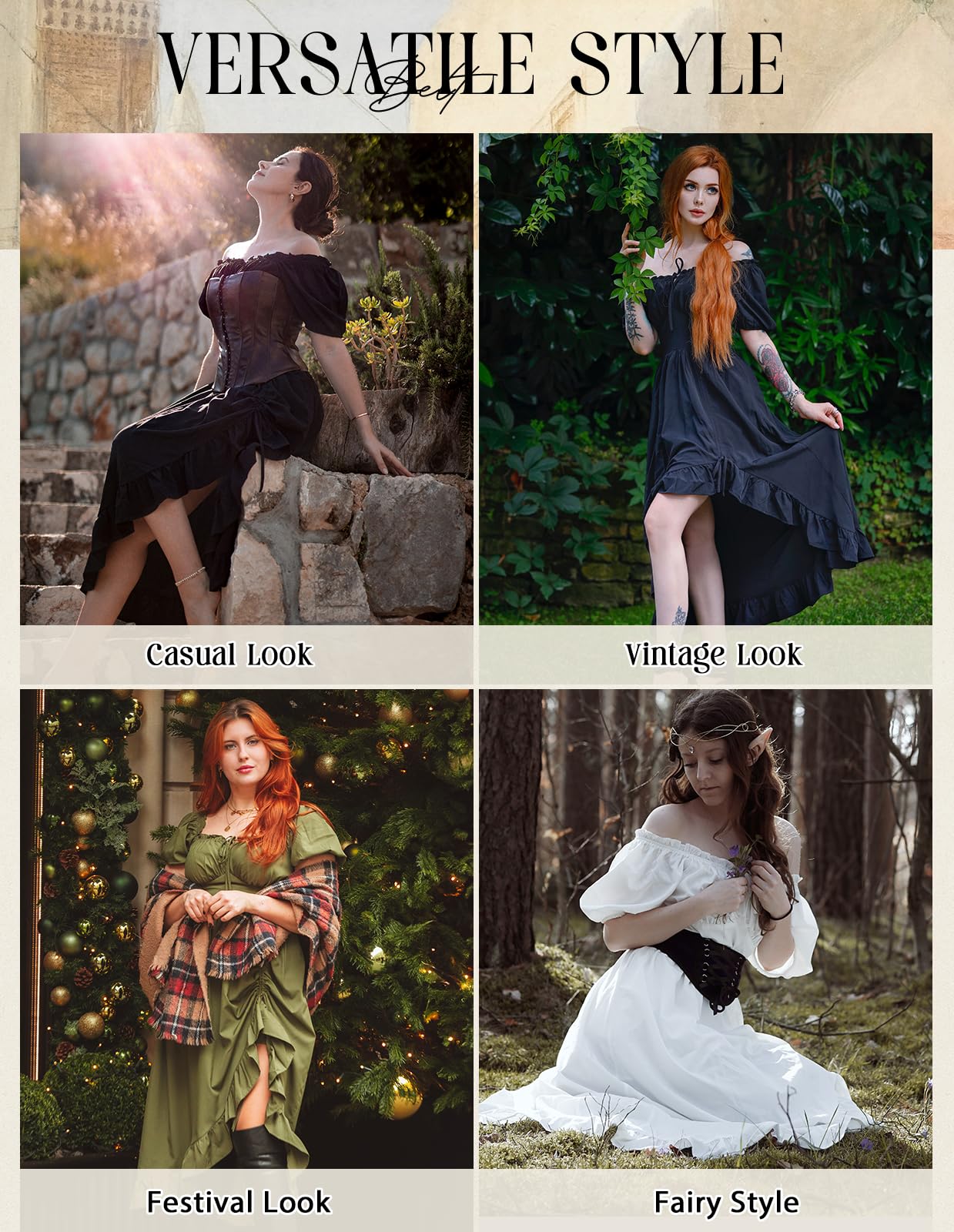 🌼【Design】Corset dress is a versatile piece that effortlessly switches between a short-sleeved, elegant Victorian style and a jaw-dropping, sexy off-the-shoulder look. Its ability to transform will leave everyone in awe of your fashion prowess.