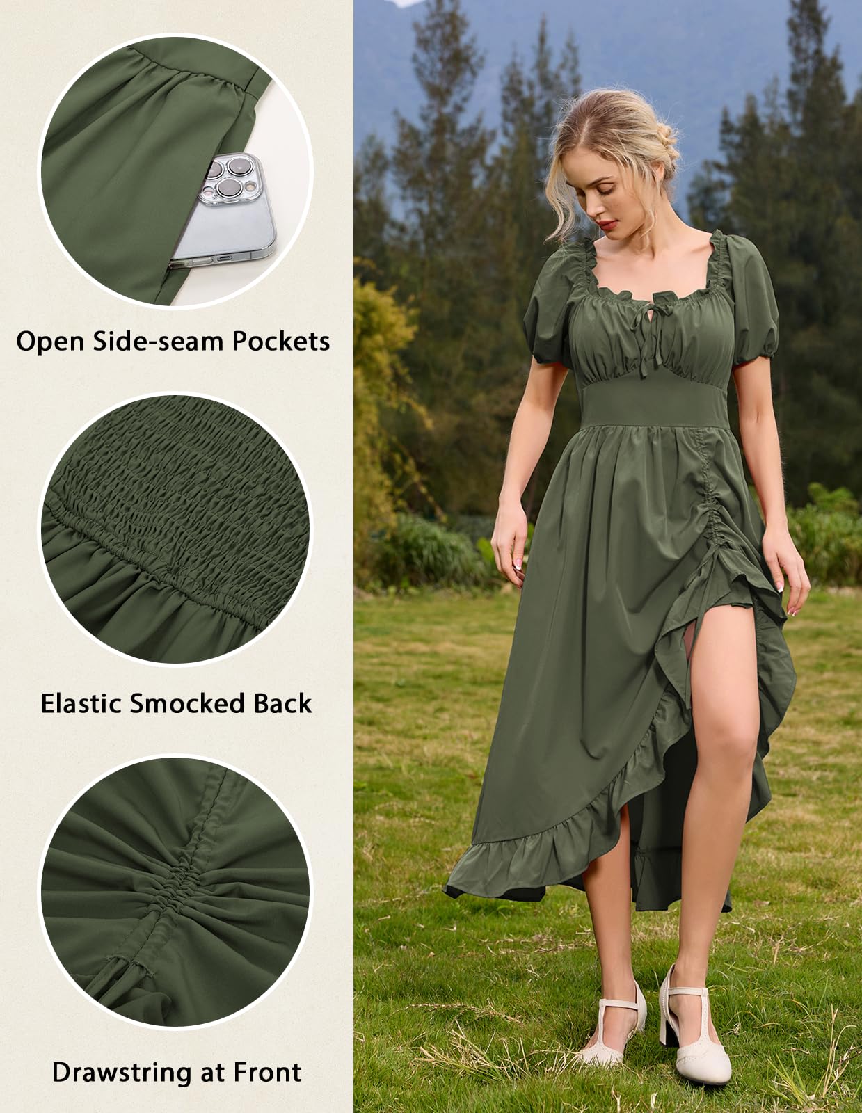 🌼【Styles】 Victorian dress, Renaissance fair outfit, Peasant Costume, Cottagecore Dress, Empire waist dress, High low dress, Fairy dress, Ruffle dress, Flowy Dress, Summer Dress