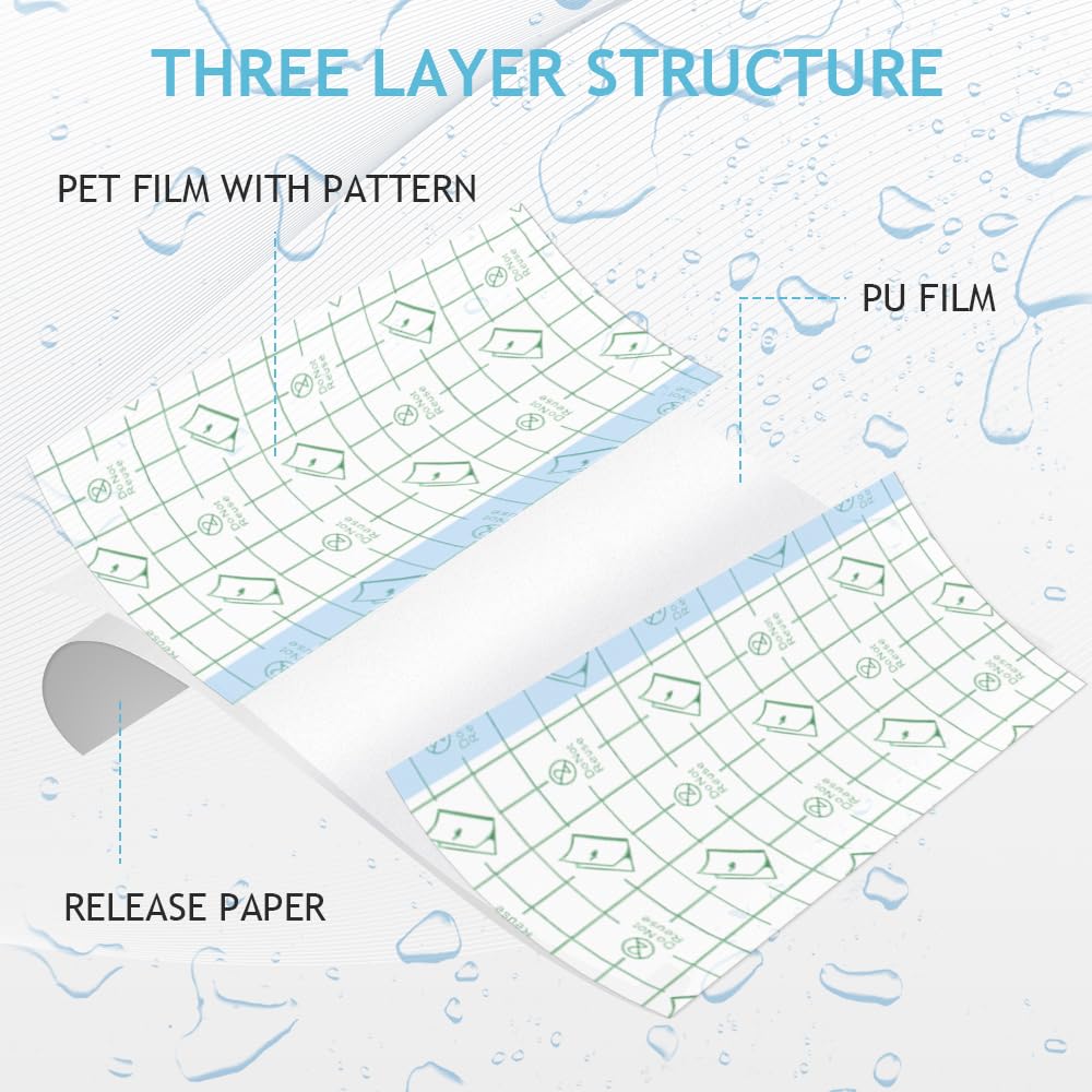 EASY TO USE: Transparent film dressing has three layers, which are composed of PU film, adhesive and release paper, when you use waterproof bandages for wounds, tear off the release paper first, stick the adhesive side on the part you need to stick, then tear off the top layer, and then press gently to fix the position, clear bandages waterproof can not be reused.