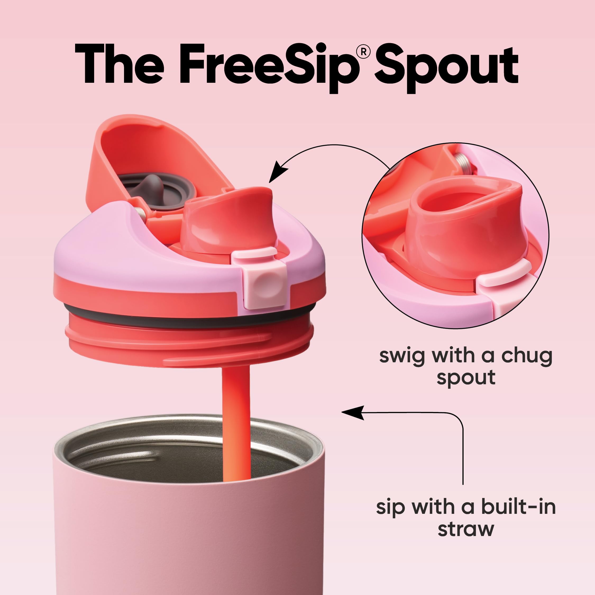 Versatile FreeSip spout lets you choose how you drink: Patented 2-in-1 FreeSip spout gives you two options when drinking; sip upright through built-in straw or swig by tilting back the spout opening