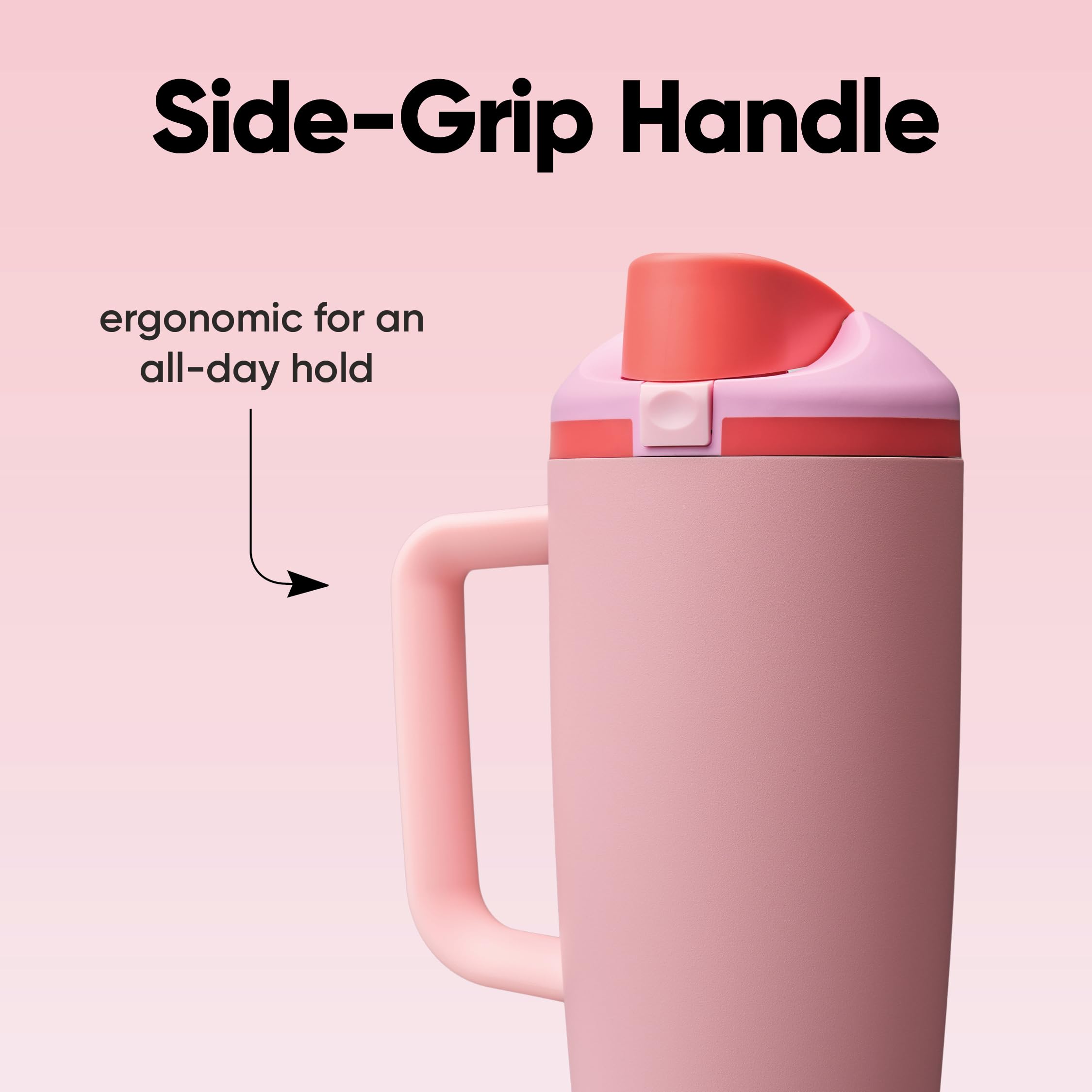 40-ounce insulated stainless-steel tumbler with FreeSip spout and push-button lid: For serious hydration; durable, unique design and patented spout; convenient push-button lid for easy opening