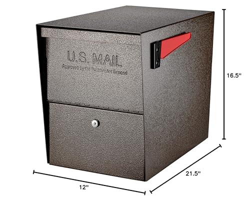 Mail Box dimensions – 21.5" D x 12" W x 16.5" H | Weight – 53 lbs. | Packages – 10.5” L x 3.5” – 4.5” W x 3.5” – 4.5” H | Refer to product pictures for more dimensions