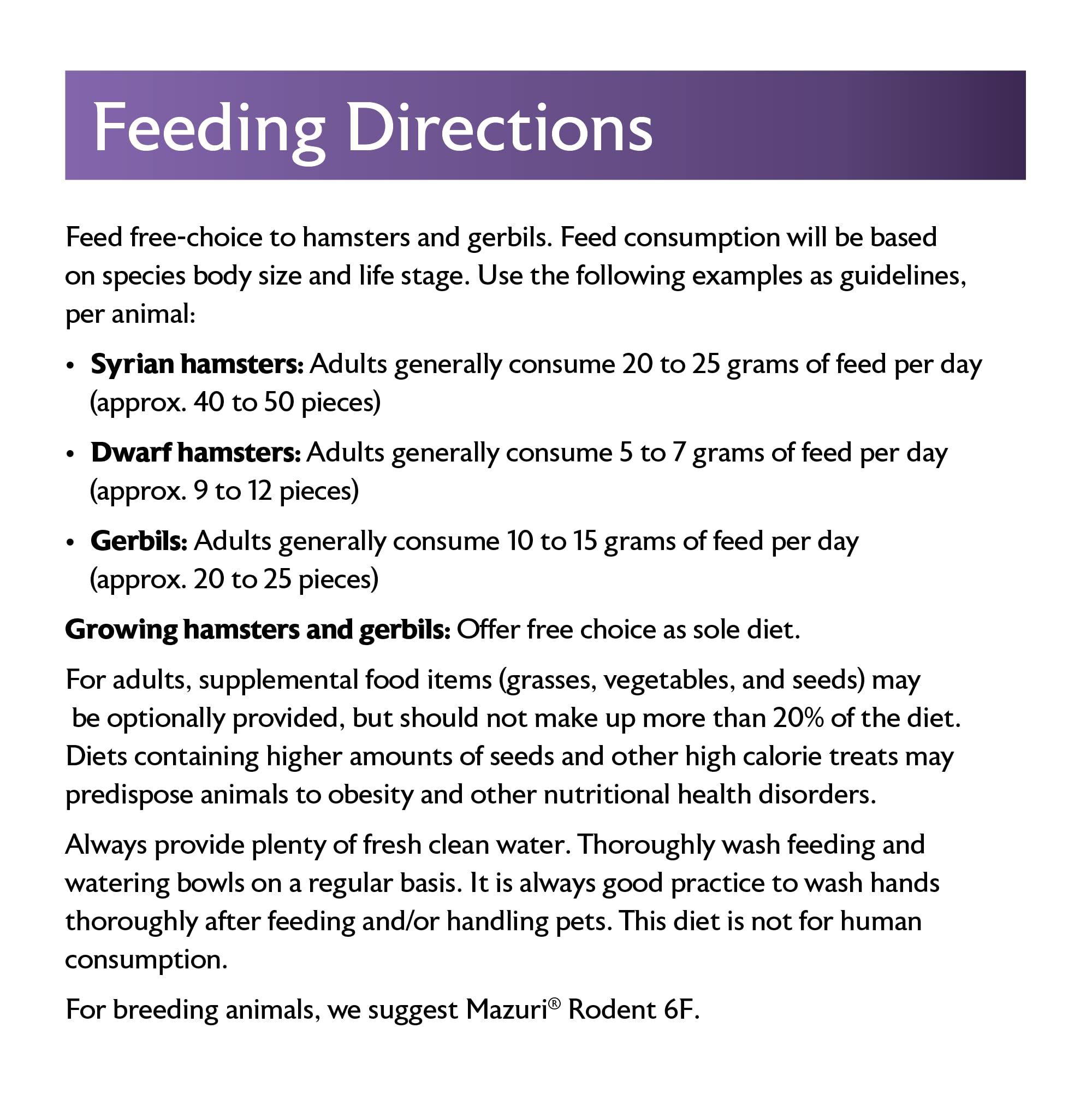 Designed specifically for hamsters & gerbils. Formulated with a mix of protein, fiber, and starch levels in healthy ranges for herbivores. The tasty morsels come in a variety of fun shapes and sizes to help encourage foraging.