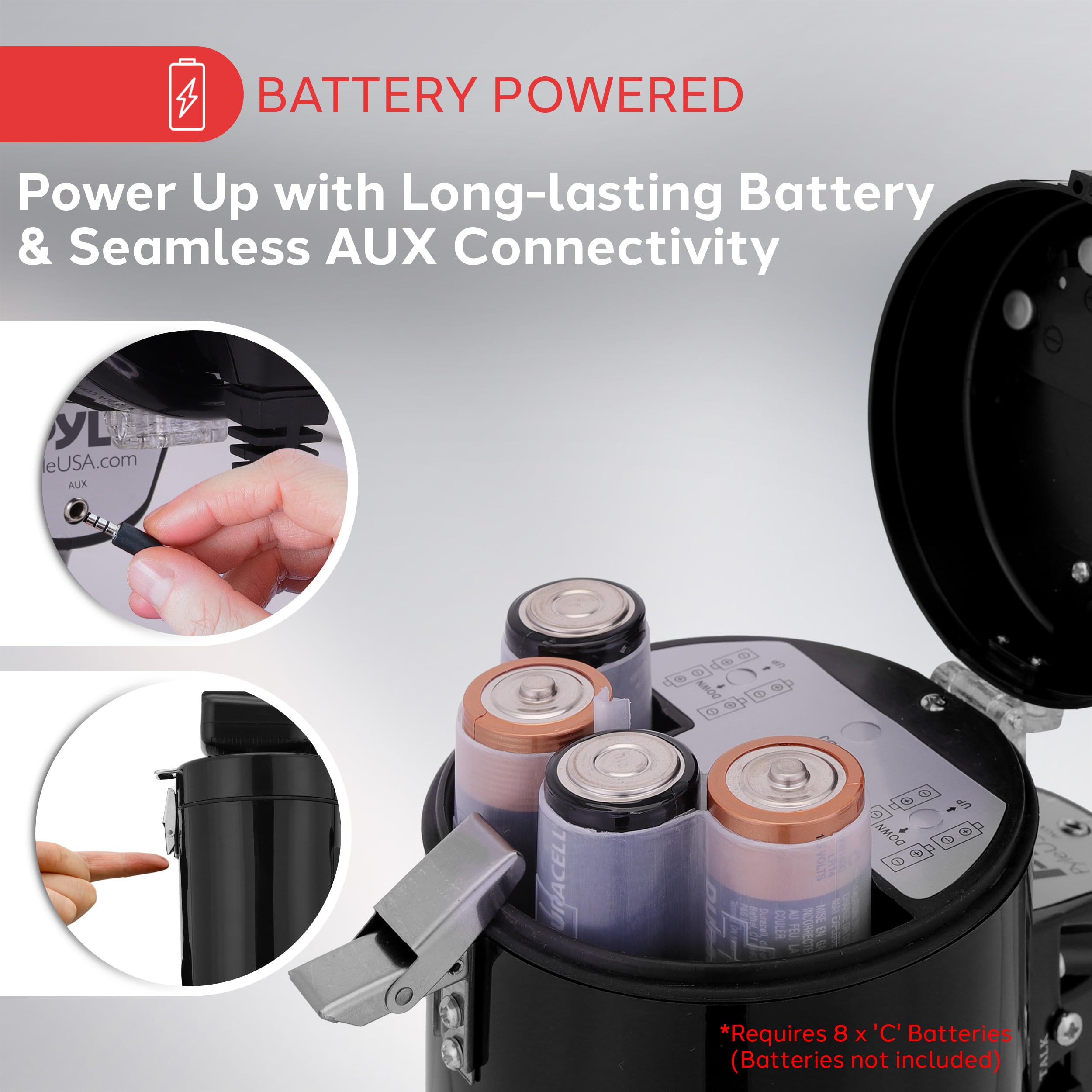 DURABLE & RELIABLE CONSTRUCTION - Made from ABS material, this Pyle megaphone has a bell width of 13.8 inches and is battery-powered, requiring 8 x 'C' batteries (not included). The sturdy construction ensures durability and reliable performance.