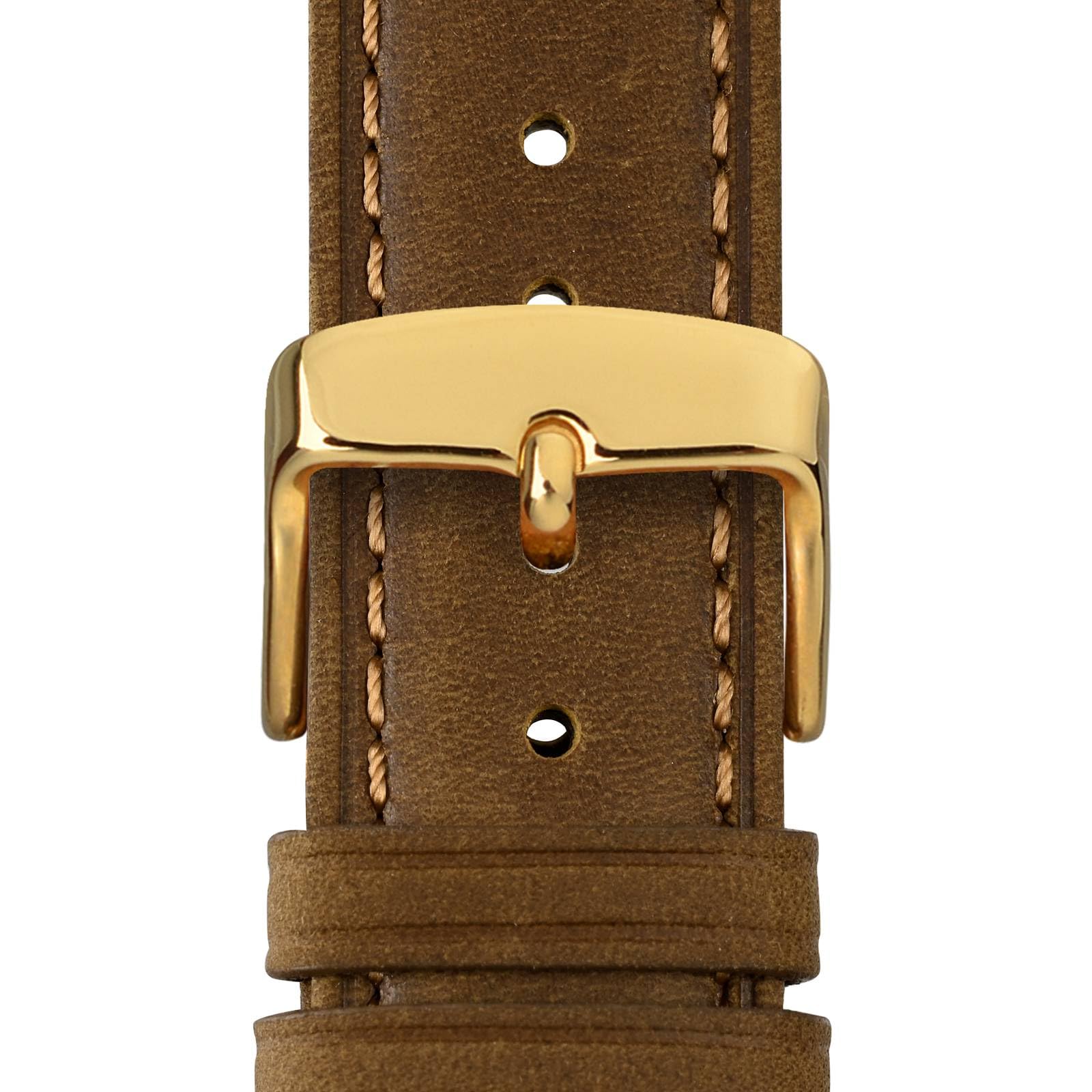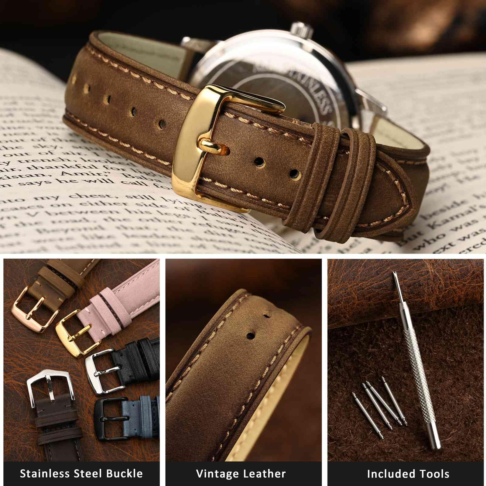 WATCH BAND MATERIAL: Made of good quality crazy-horse leather. Crazy horse leather is strong and durable which is popular for use in horse saddles. Its simple design and versatile color can make your watch stand out effortlessly.