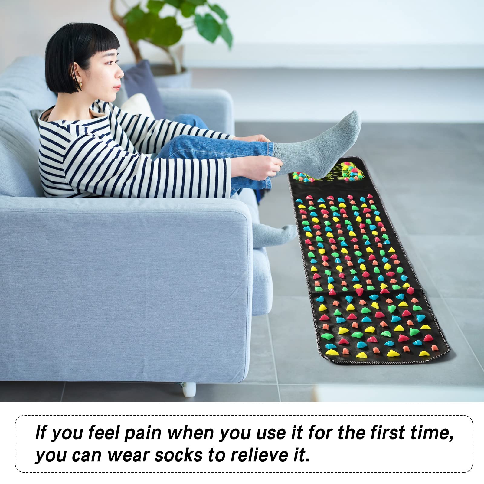 Appropriate Size: this foot acupressure mat is about 68.89 x 13.78 inches/ 175 x 35 cm, and you can lay it flat in the room for use; You can also place the foot point mat in the entrance, kitchen, living room and other places where you often go, and stimulate the acupoints on the soles of your feet while doing things which is convenient to use