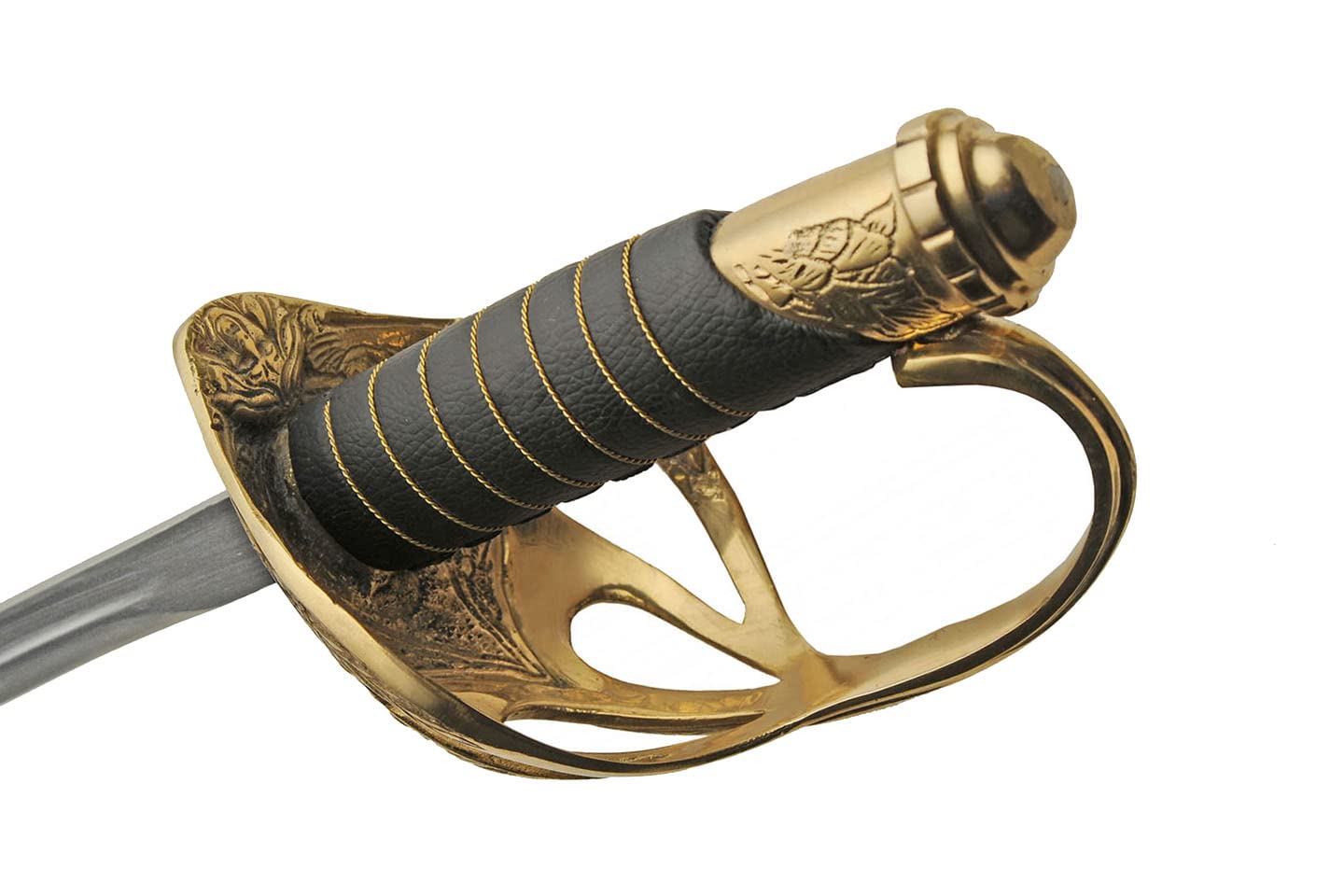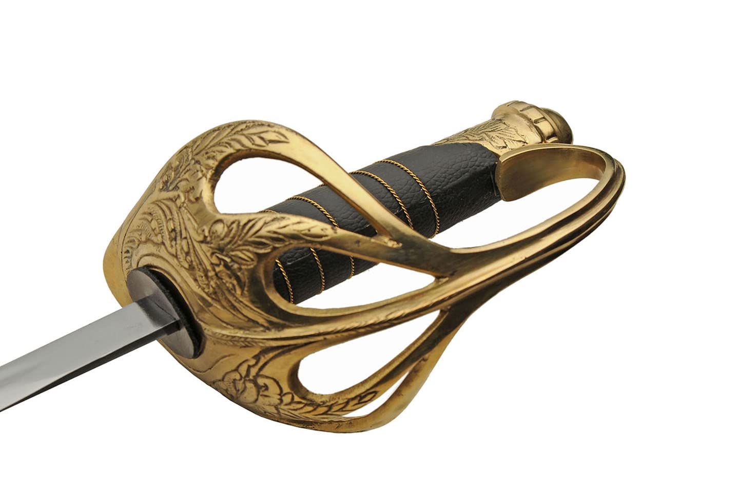 Step into history with this 32” officer’s ceremonial sword, a distinguished szco sword replica designed with traditional military styling. Featuring a polished brass hand guard and pommel, it captures the look of classic military dress swords carried by officers. The leather-wrapped grip ensures comfort and control, while the included steel scabbard (sword metal sheath) provides safe transport and elegant presentation. This collectible metal sword is perfect for reenactments, cosplay, parades, or ceremonial use. Whether you’re a history enthusiast, a collector of swords for men and swords for adults, or searching for a unique military replica sword, this officer’s sword for adults makes a striking centerpiece. While not a real sword for combat, it captures the look and feel of real swords and remains an ideal choice for sword display, costumes, or gifting to veterans and enthusiasts of real swords for adults.