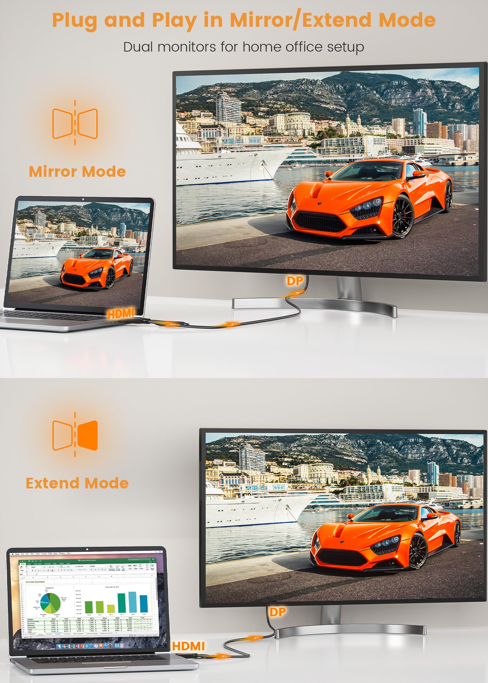 【Plug & Play】HDMI PC to displayport monitor, no driver and software required. Plug in HDMI out on source device, and DP input on display device; select corresponding DP input on display. Note: Uni-directional HDMI-DP Cable Adapter. It's not a bi-directional, only support signal transfer from HDMI to DisplayPort input monitor, not for DisplayPort to HDMI input monitor