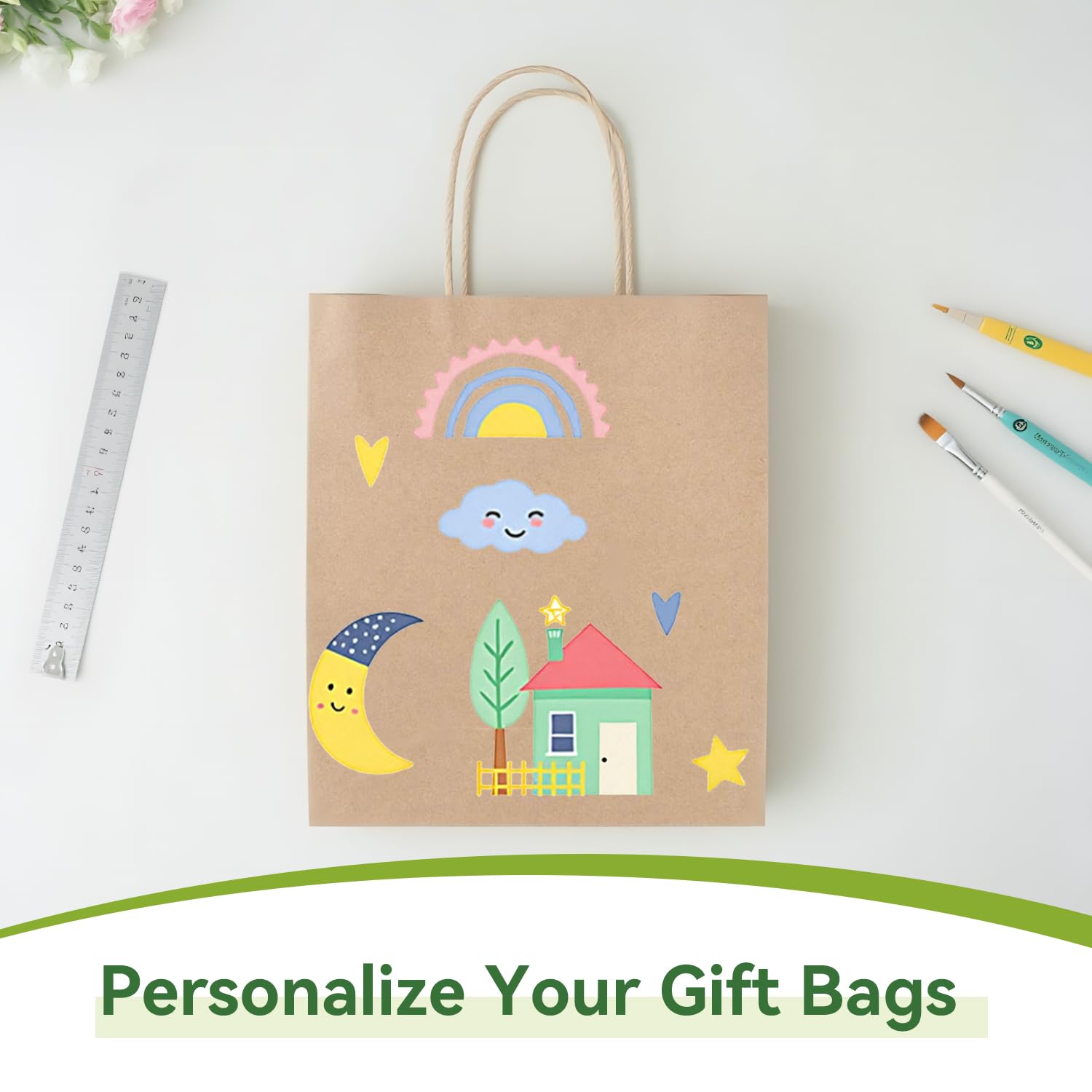 [Customizable Design]: Our bulk gift bags brown can be customized for any occasion and are perfect for gift-giving and special events. They're easy to stamp and color, and take ink and color well. Our paper bags with handles bulk are also great for craft shows and festivals, and you can add your business stamp or logo to them.