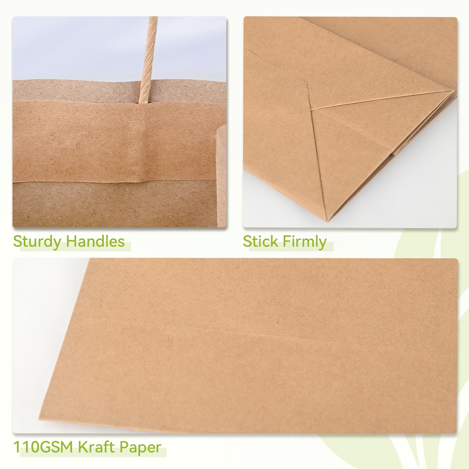 [Good Durability]: The bottom of our brown gift bags with handles bulk is sealed with adhesive to provide added strength and support to prevent bottom leakage. We reinforce the inner side of the lifting rope and apply glue twice to improve the load-bearing capacity of the kraft bags. Additionally, the bag opening is easy to open and does not stick together. Brothersbox Paper Bags with Handles Bulk are strong enough to carry all the medium gifts you put inside.