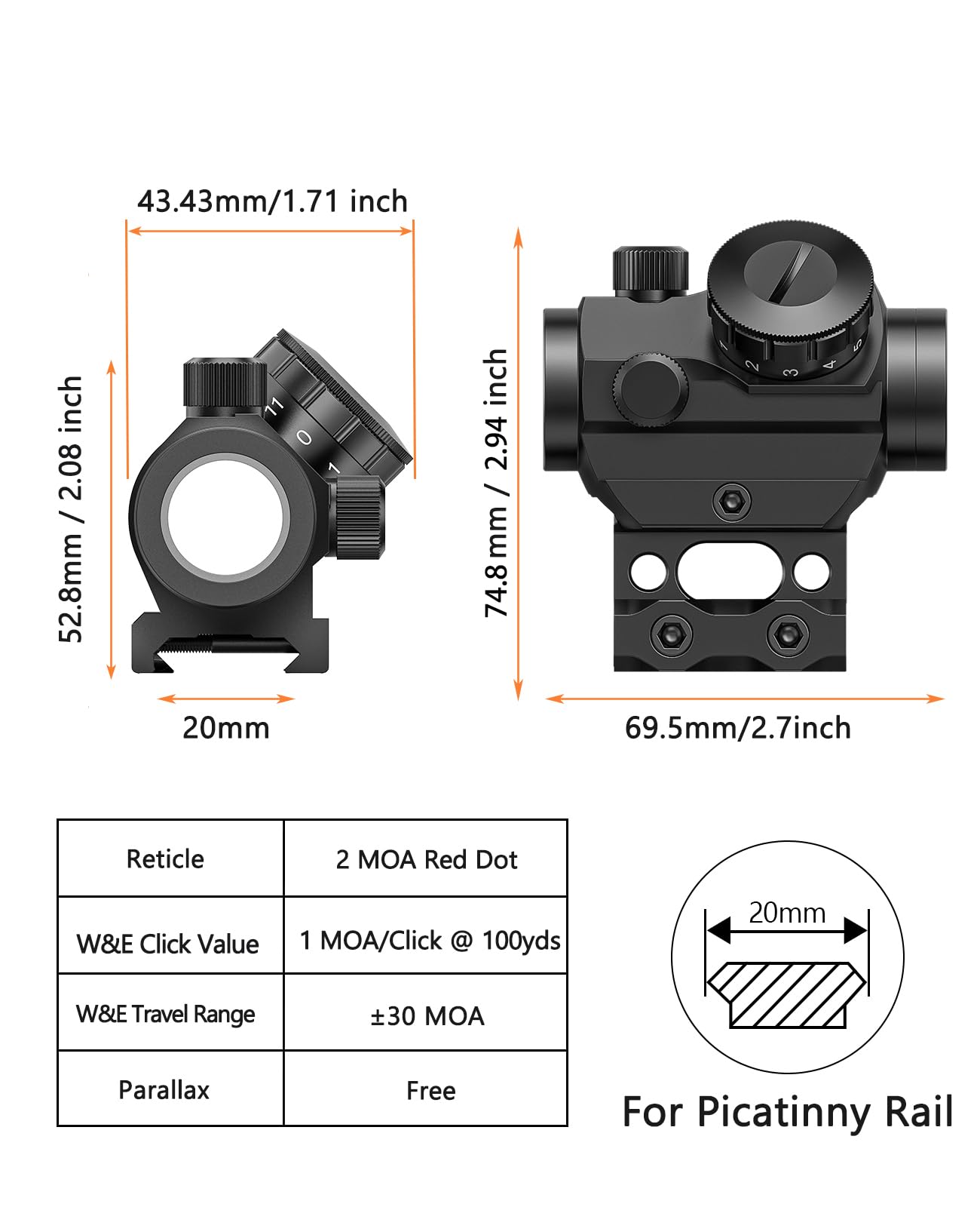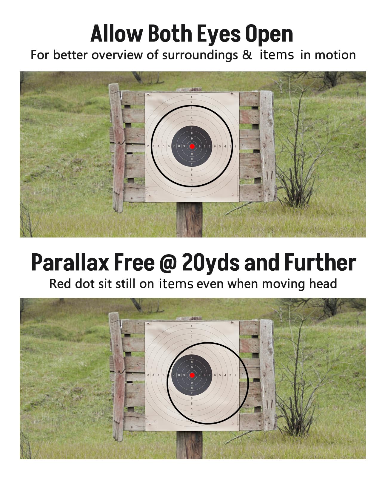 [ More Accurate ] From 3-4MOA to 2MOA. This Updated MidTen 2MOA red dot sight is more accurate. Unlimited eye relief makes for quick sighting. Multi-coated scratch resistant lens provides optimized image clarity and increases light transmission during low light situations.