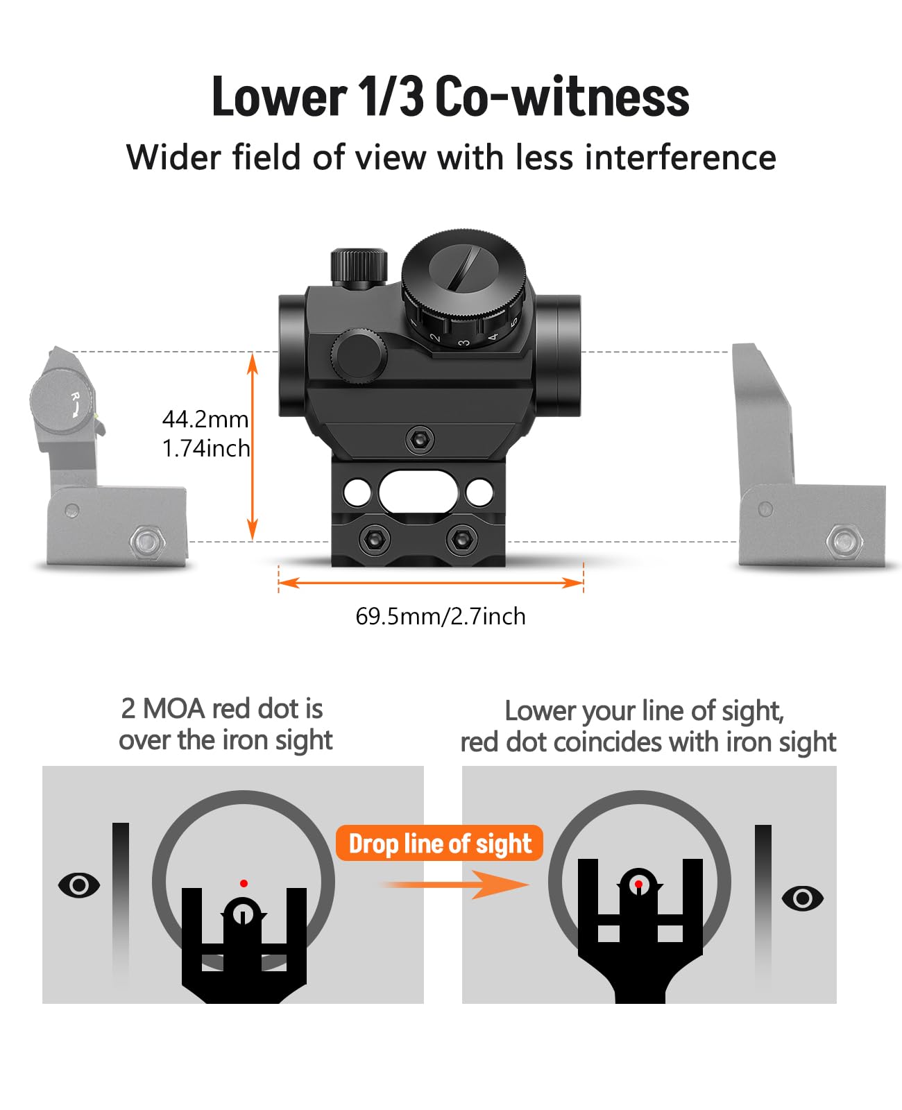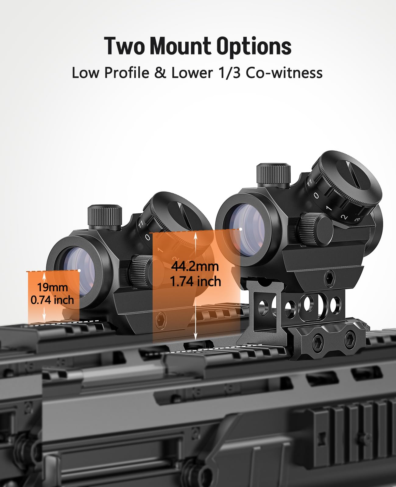 [ 2 Height Mount Options ] Offers two height options (Low and Lower 1/3 Co-Witness), lending its functionality on any platform.