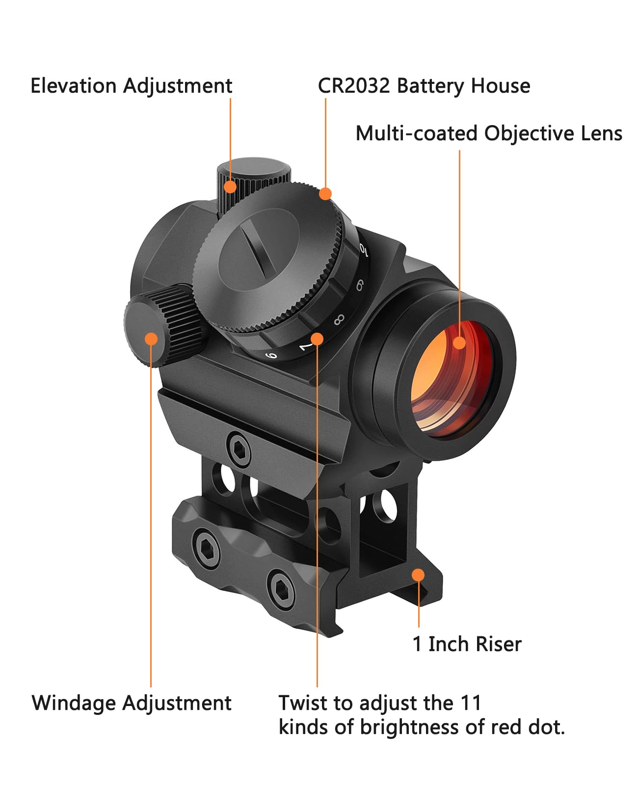 [ Multi Levels of Brightness ] 11 red dot brightness settings provide optimal visibility in any light conditions. Settings 1-5 are suitable for dim or rainy environment while settings 6-9 are better for a bright or sunny day. Settings 10-11 are good for sunny noon.