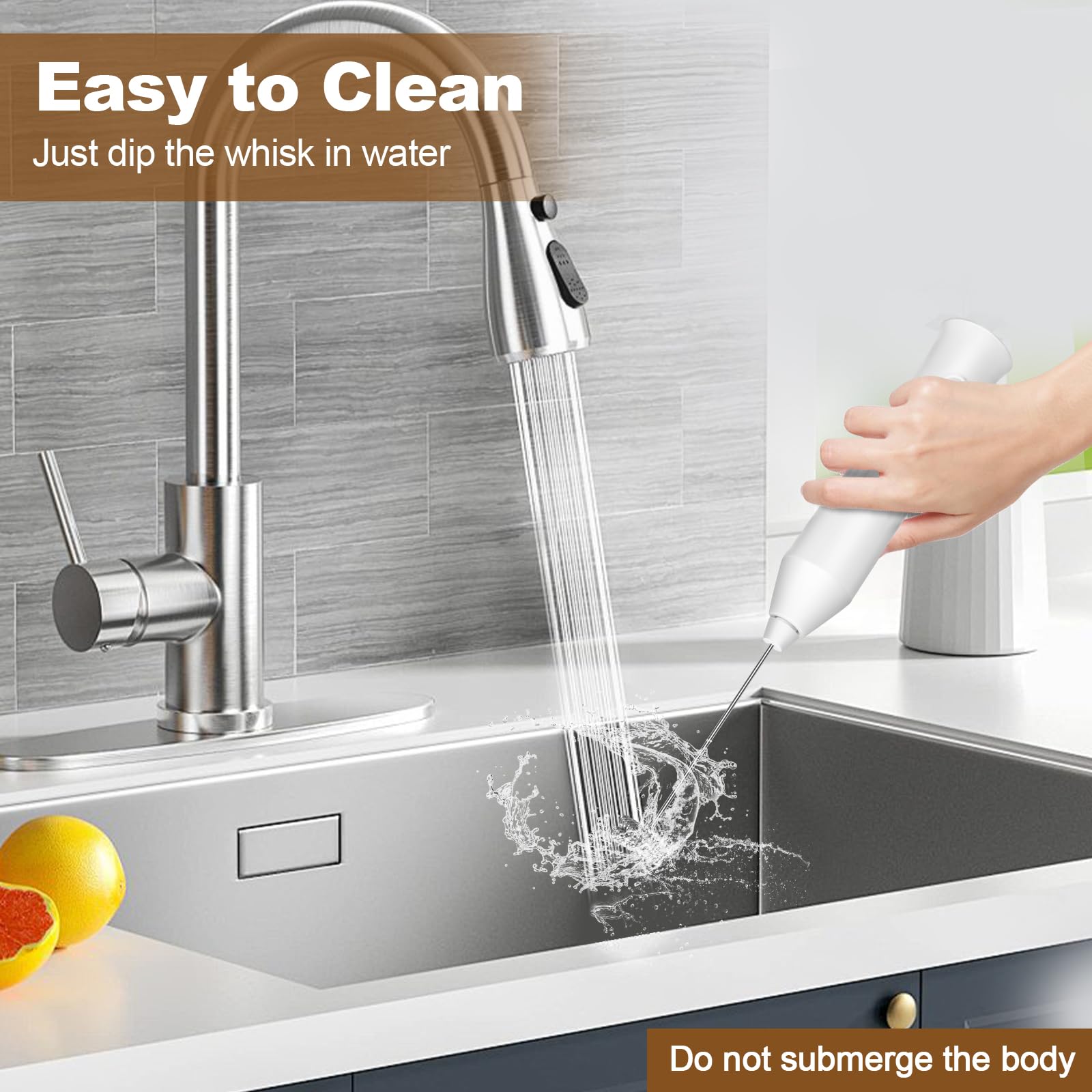 【Easy to Clean】This milk foamer features stainless steel construction for easy cleanup. Simply submerge the beaters in soapy water, press the button for vortex cleaning, or detach and place them in the top rack of the dishwasher.(Please read the enclosed instructions carefully before use.)