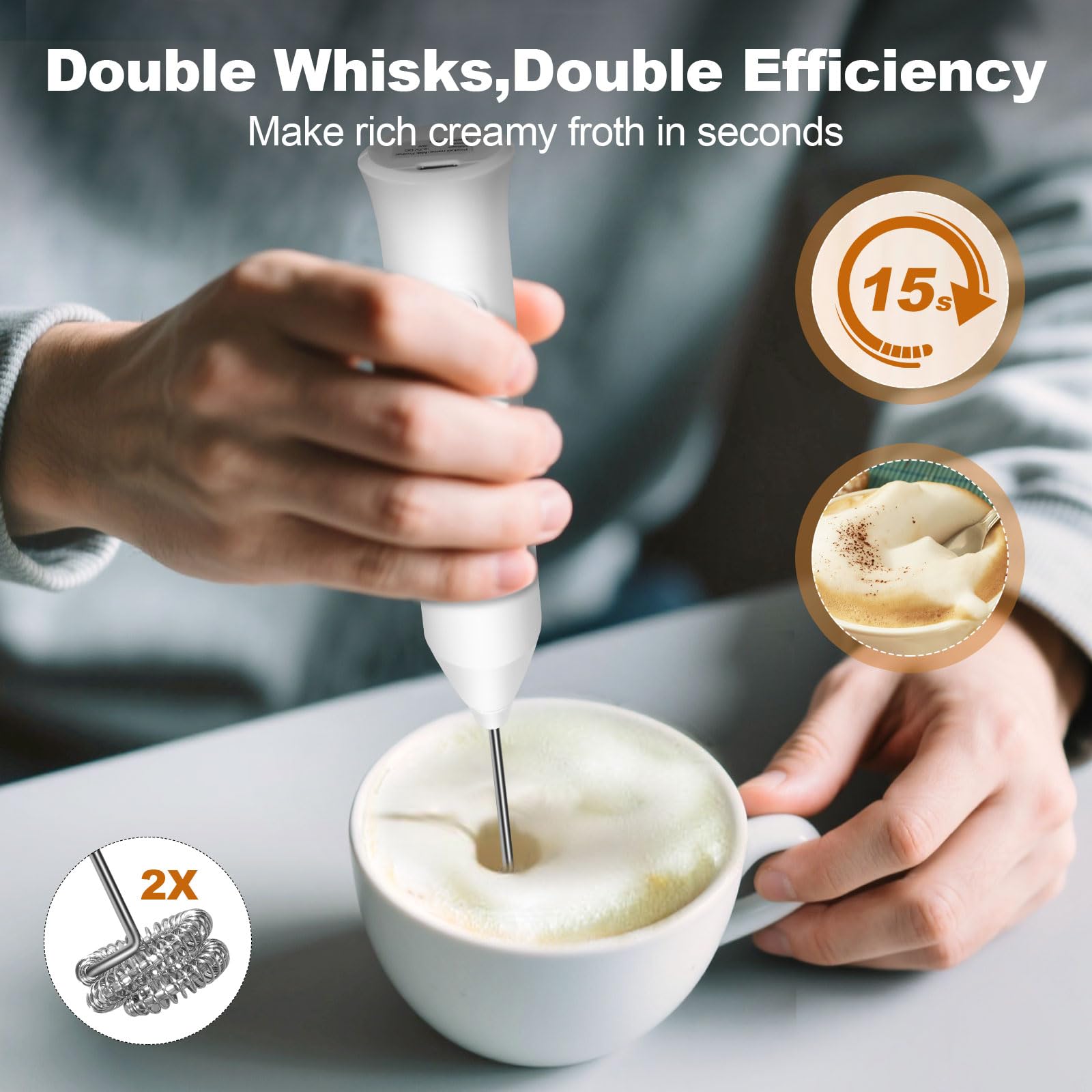 【Silky Milk Foam】With its premium stable motor & dual-spring design, this hand frother whips up smooth, rich foam in 15 seconds. 3 speed settings (High/Medium/Low) customize texture—ideal for coffee lovers.