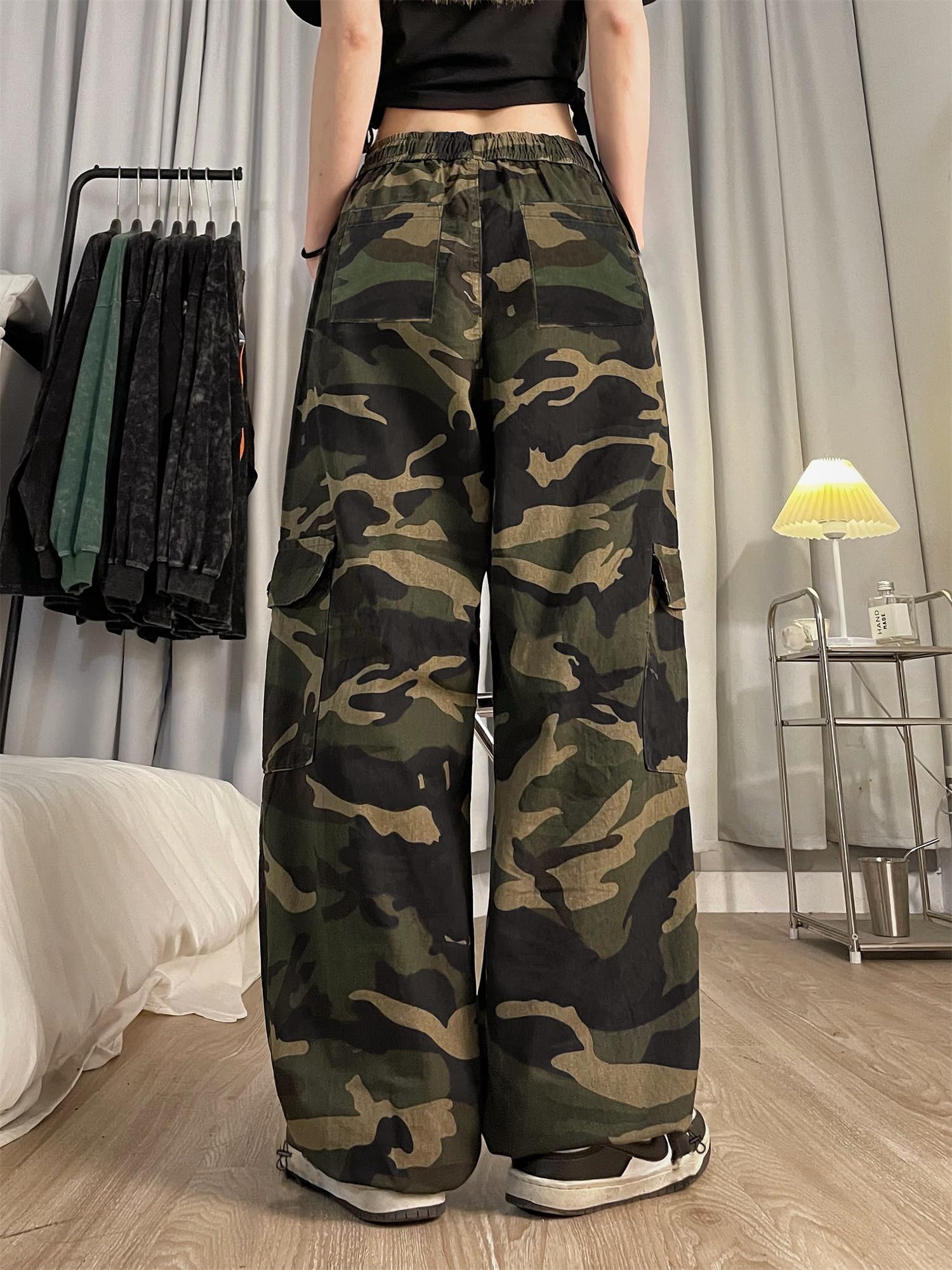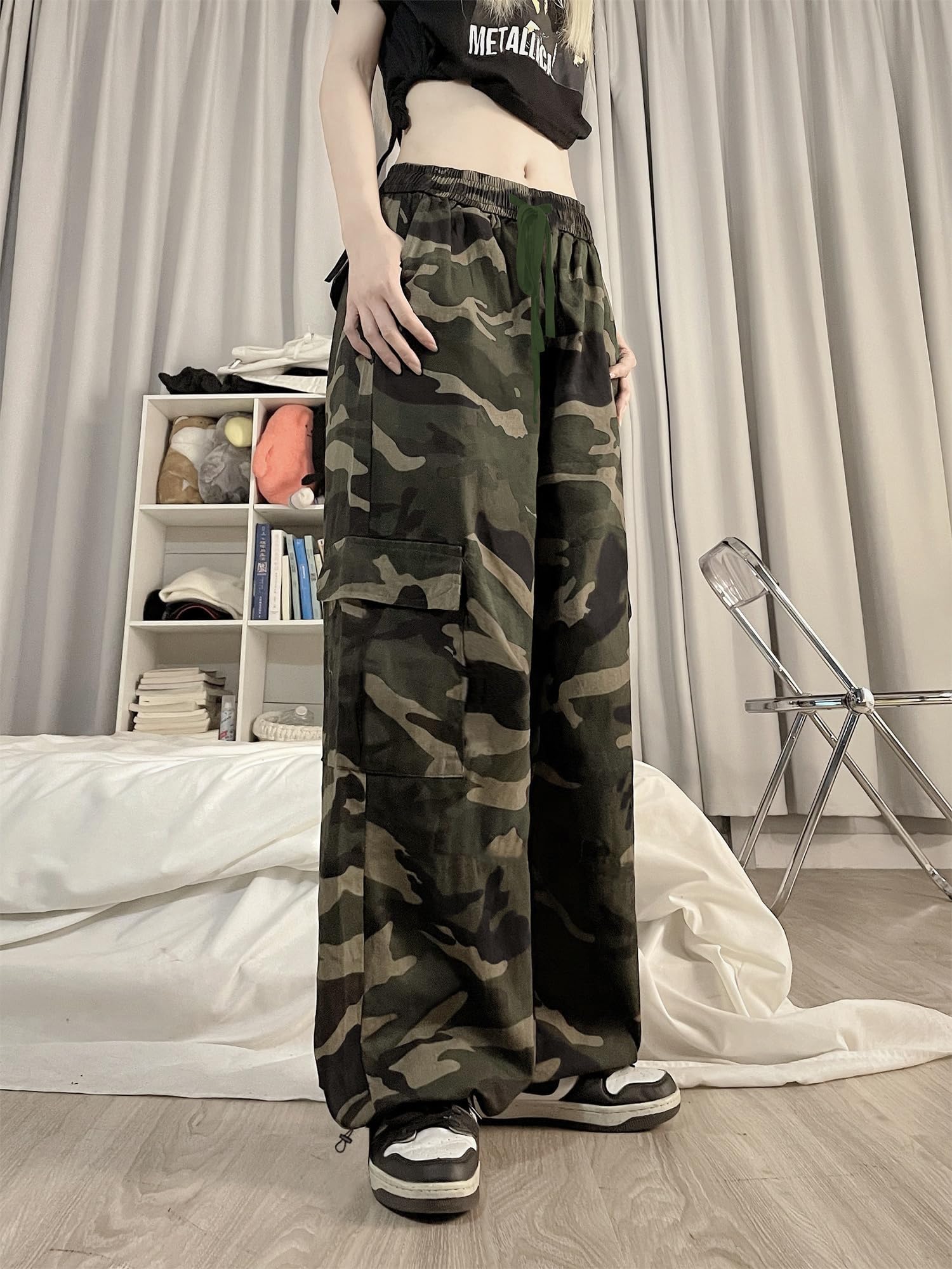 Features: Wide elastic waist,Long drawstring,Relaxed fit,6 pockets,High waisted wide leg pants for women