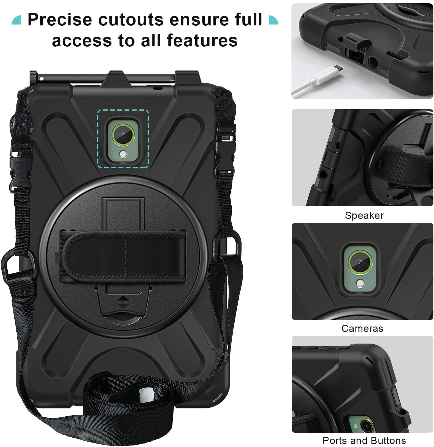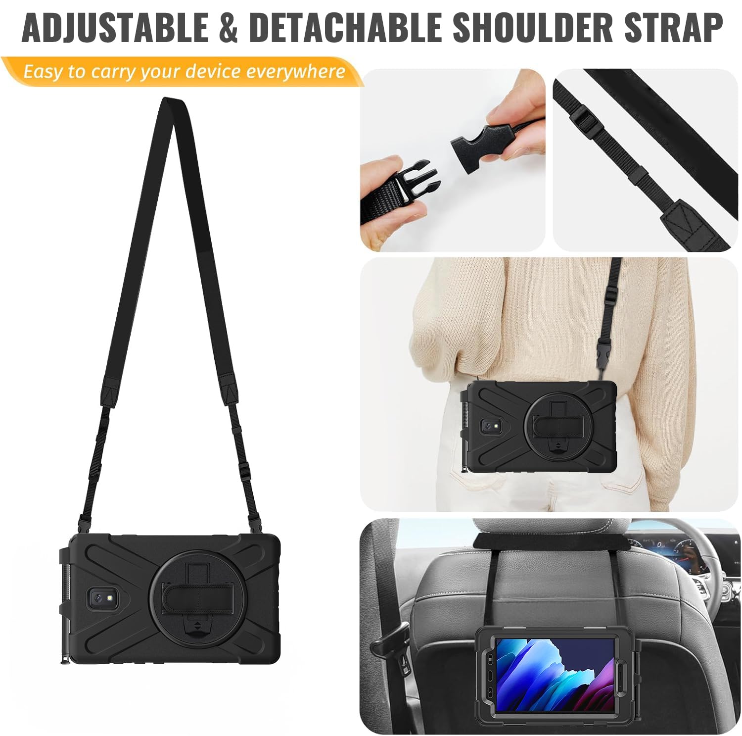 With an adjustable and removable carrying shoulder strap, hang it anywhere for better entertainment, your Galaxy Tab Active 5/Active 3 8.0" tablet can be carried vertically or horizontally in a more secure way during any outdoor activities