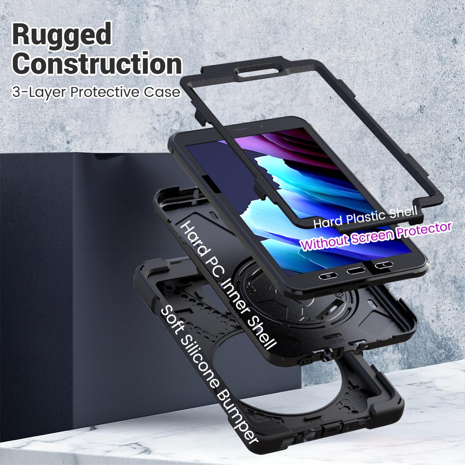 HIGH QUALITY MATERIAL - 3 Layers structure of Galaxy Tab Active 5/Active 3 kids case made of Hard PC and Flexible Soft Silicone, Military Grade Material provides tablet comprehensive protection. 3.5mm convex lip of the lens for Camera Len, Anti-Scratch, Anti-Fingerprint, Shock-Resistant