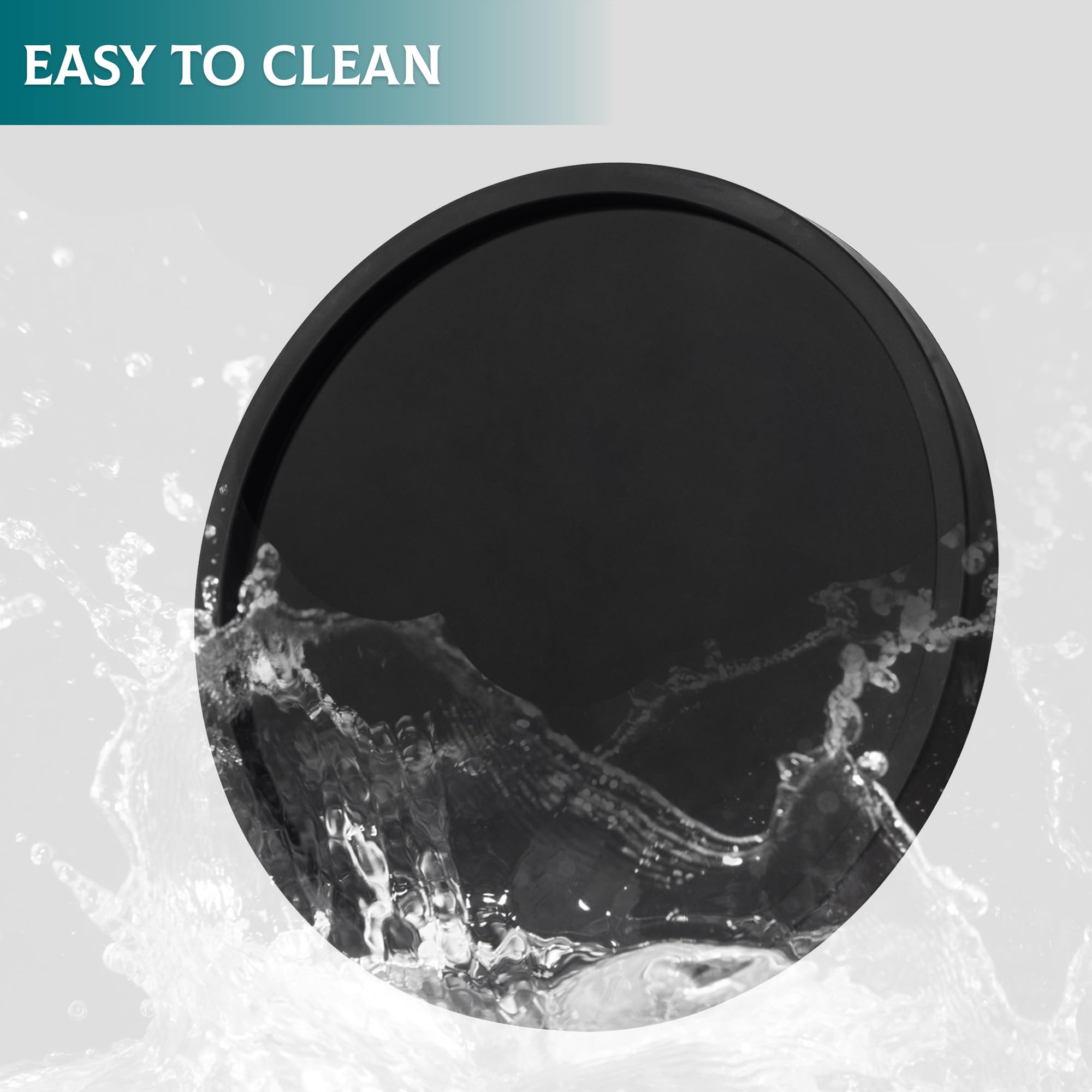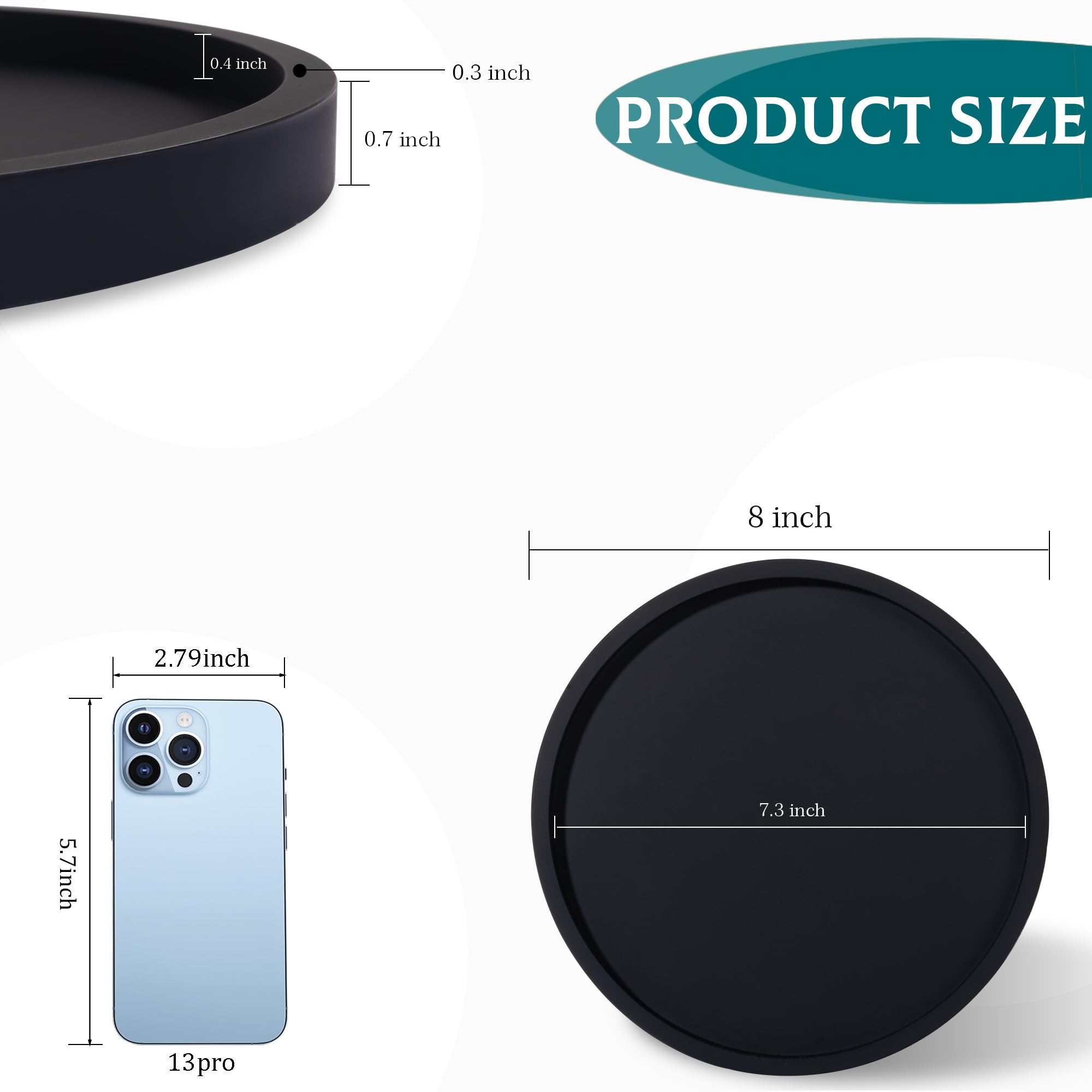 Solid Construction: Made of thickened silicone material, sturdy and robust. With smooth edges and flat bottom, the round perfume tray is non-slip, shatterproof and scratch resistant, which can better protect your granite countertops.