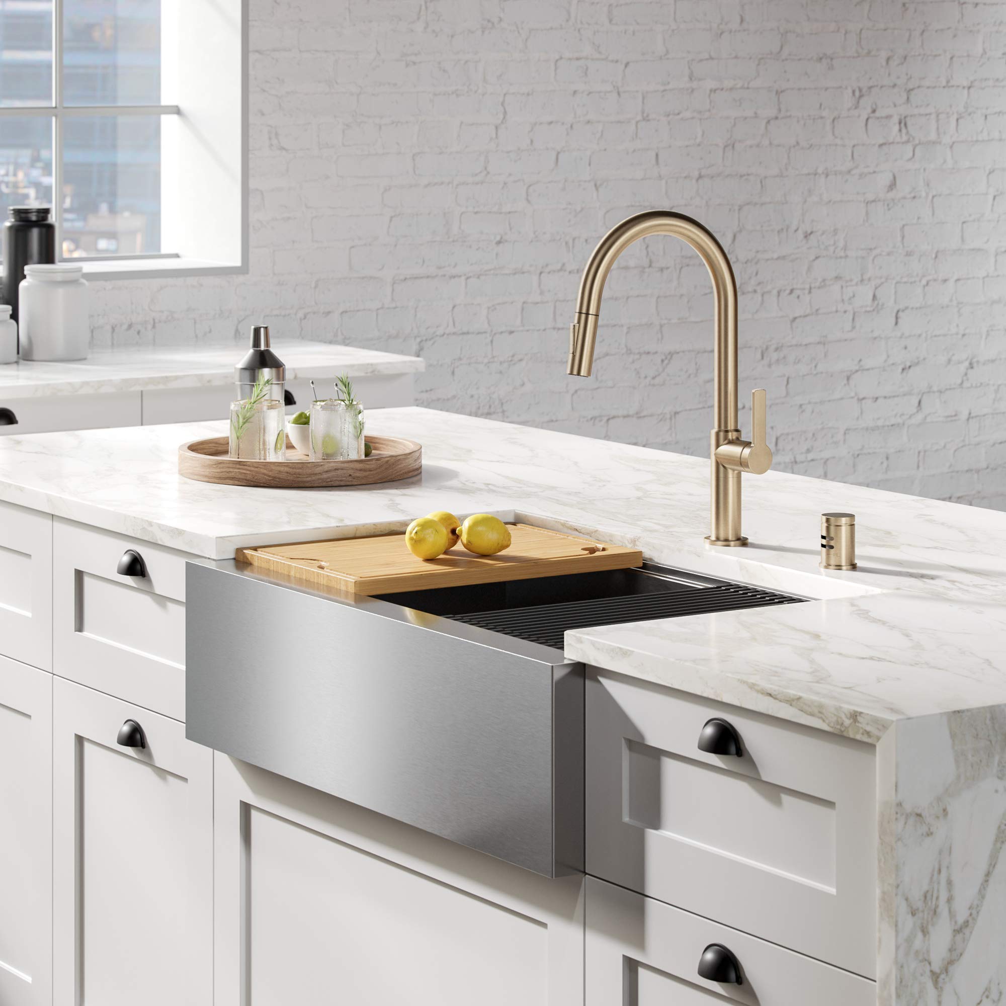 CLEAN LOOK: Cap covers entire air gap body and installs flush to the sink deck or countertop for a clean look - NOTE: Due to their reflective nature, the appearance of gold finishes can vary depending on the lighting in your kitchen. Warmer or cooler light, as well as hues of surrounding objects, can affect the way your faucet looks. Actual appearance when installed in the home environment may differ slightly from the images shown