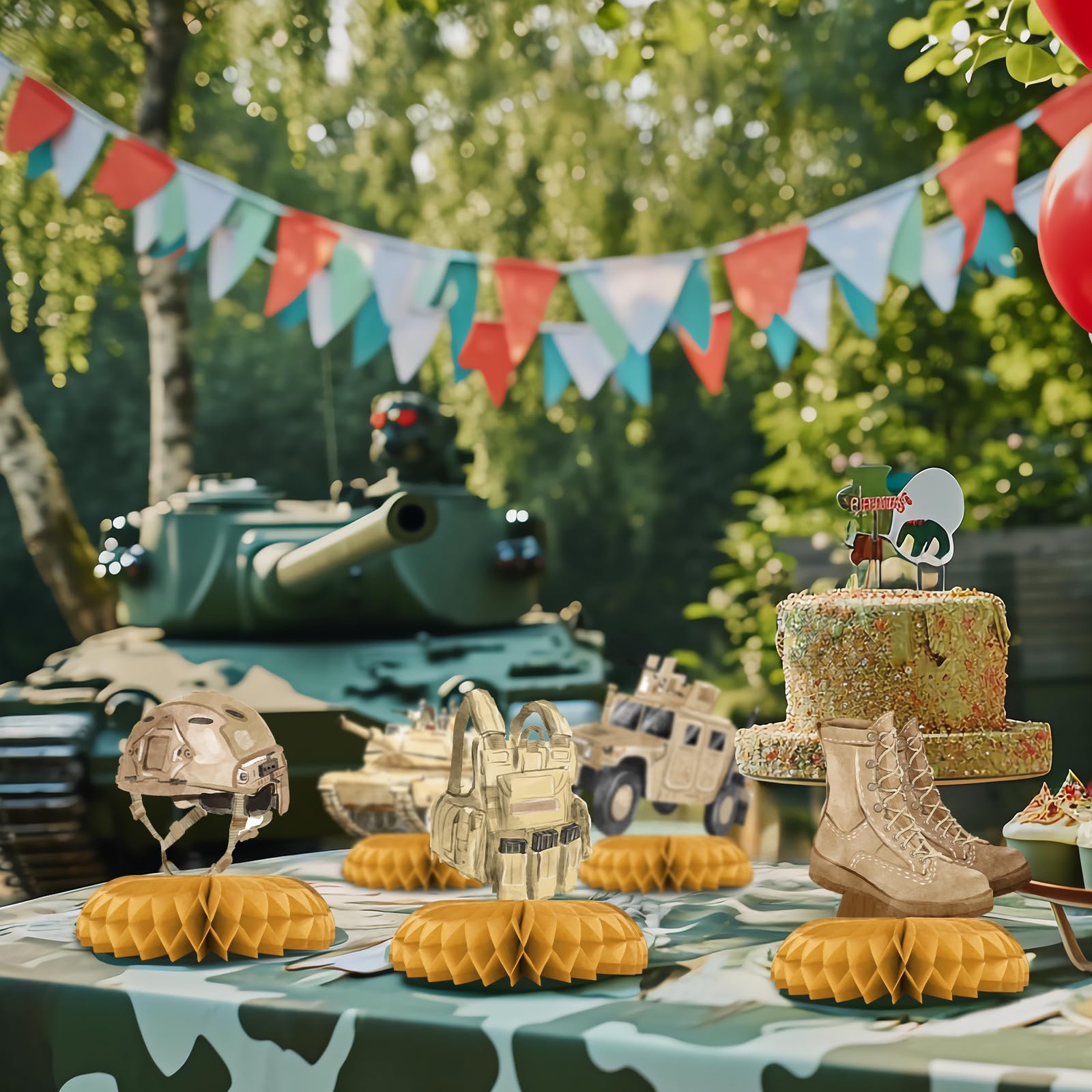 VERSATILE ARMY PARTY DECORATIONS: Perfect for festivals, creative table settings, photo props, birthdays, children's parties, family gatherings, and army-themed events. These adorable army honeycomb centerpieces add a playful and charming touch to any occasion!