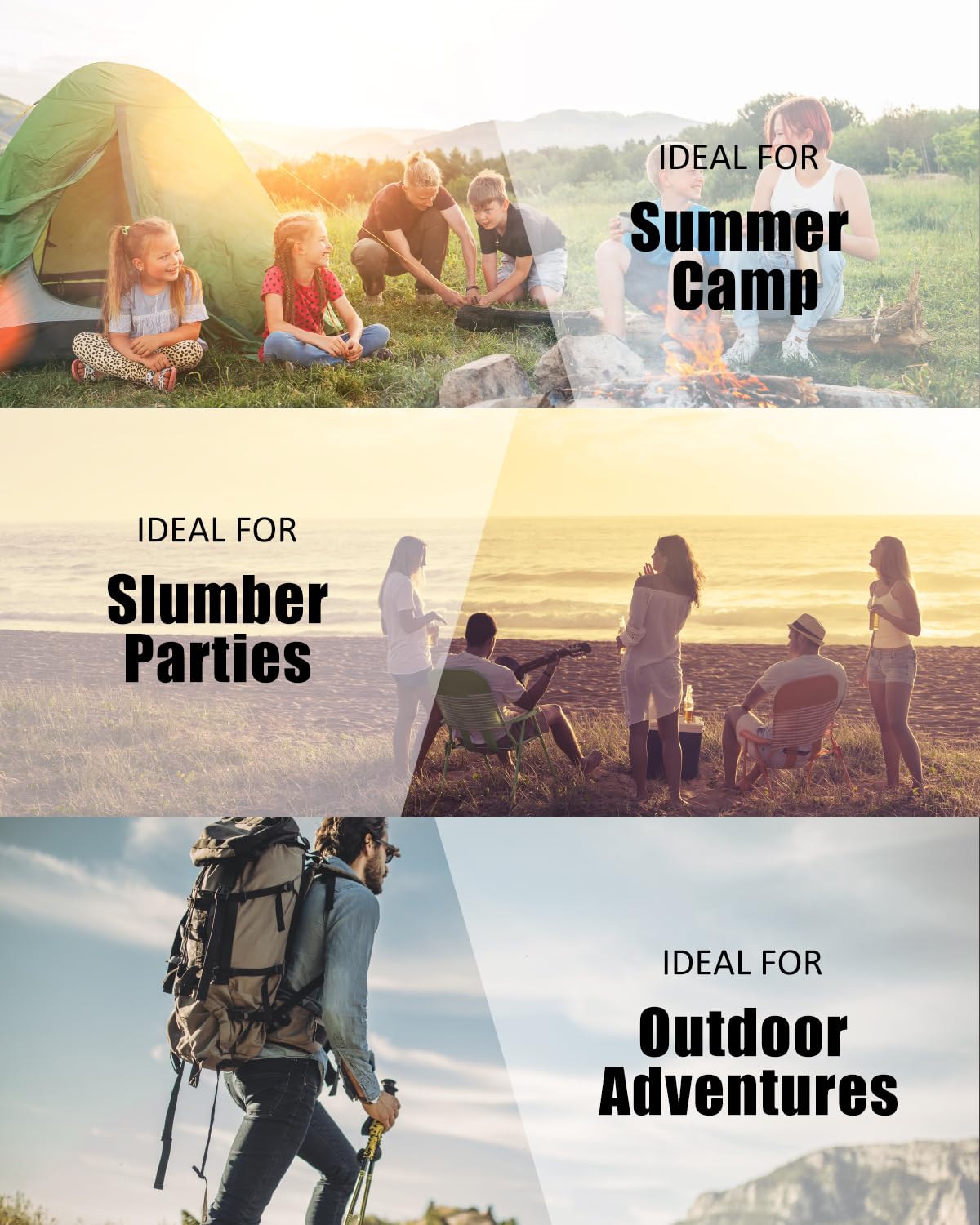 SERVE ITS PURPOSE FOR YOU AND YOUR KIDS. Wipes clean easily. This camping bags also have a weather-resistant and waterproof design to keep you warm,prevent you from any dampness