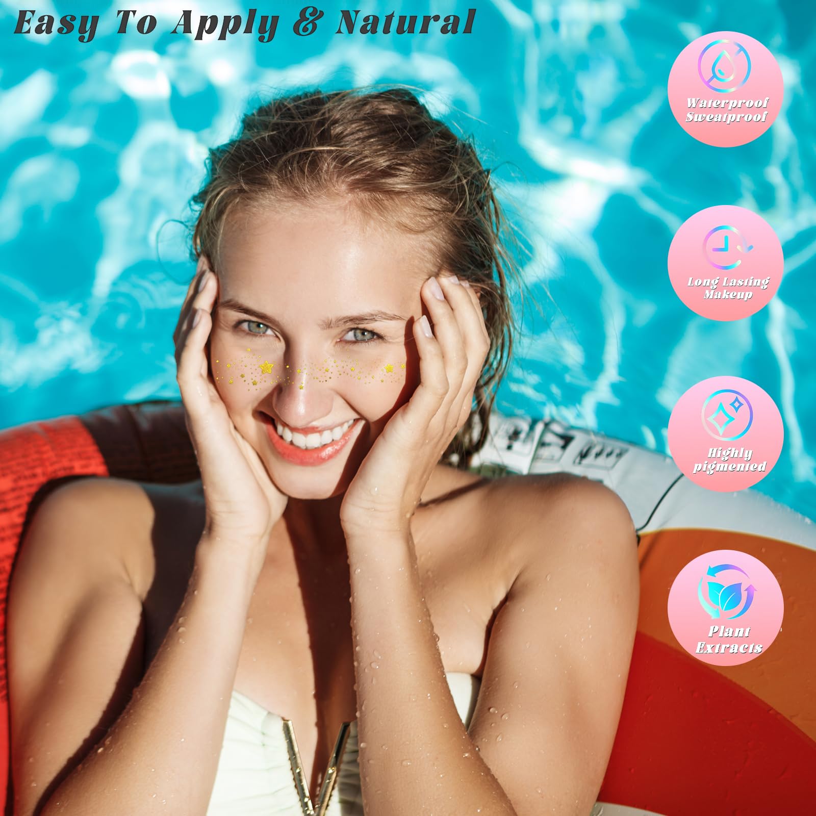 【Waterproof Glitter Freckles】Made with a long-lasting, waterproof formula, these face tattoos stay put through sweat and moisture.
