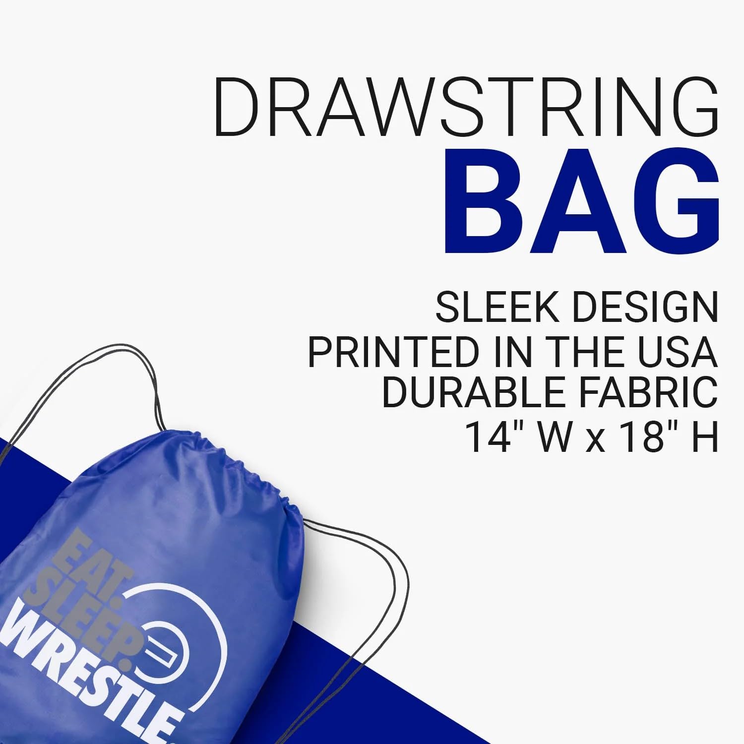 PRINTED IN THE USA. This Eat Sleep Wrestle (Stack) wrestling cinch sack is a clear winner in the style department! This wrestling bag was printed right here in the USA and is a favorite amongst wrestlers everywhere thanks to its durable fabric, sleek design, and color matched Durastring drawstring closure. Own the mat and share your passion for wrestling with this awesome bag that says it all!
