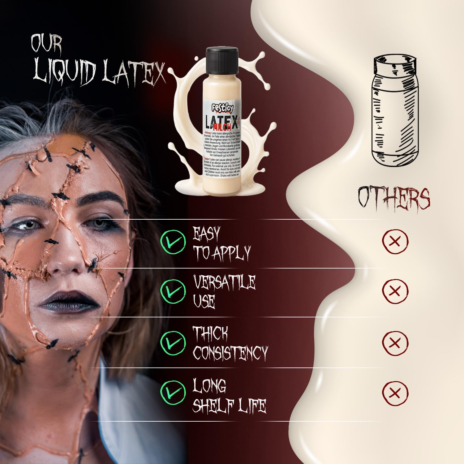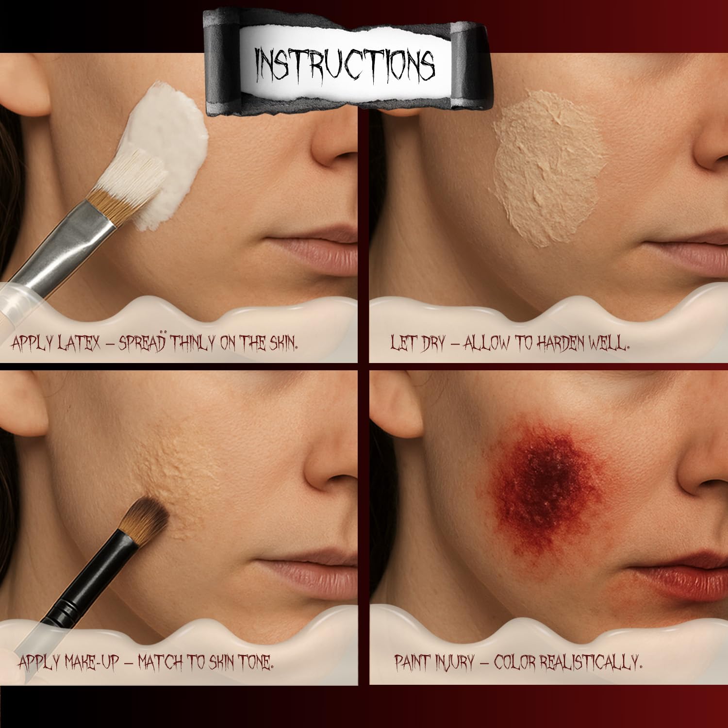 🎃 REALISTIC SFX LOOKS: Create stunning latex makeup special effects with our liquid latex – perfect for scars wounds and creepy looks during cosplay, Halloween parties or theatrical performances
