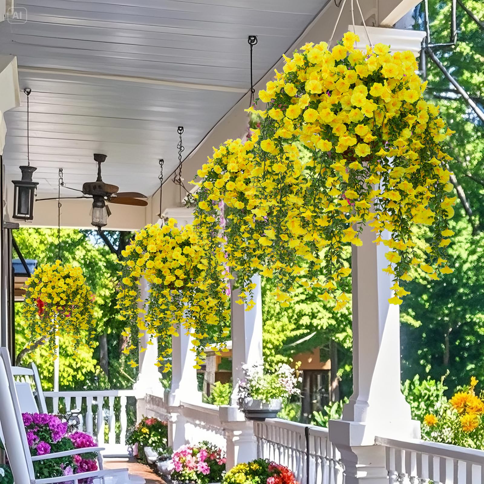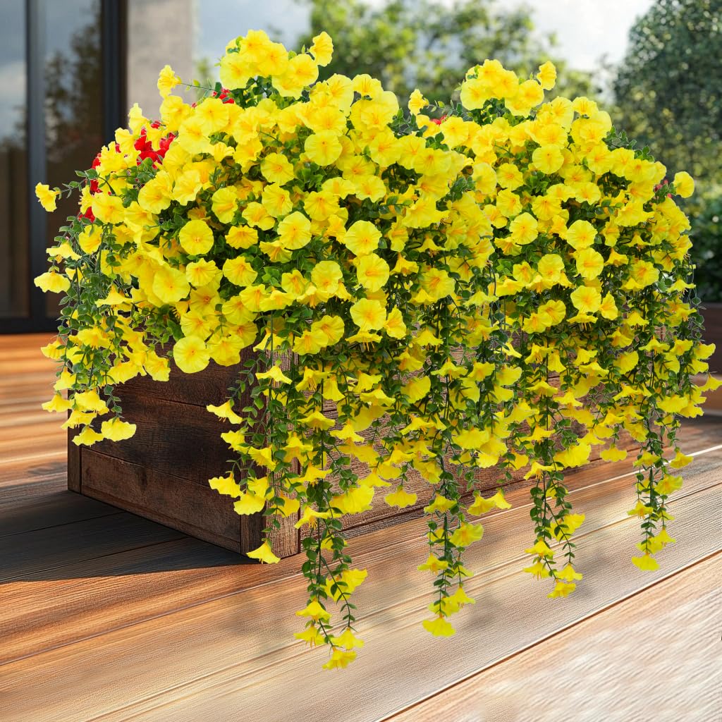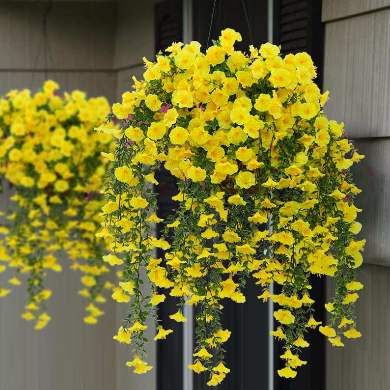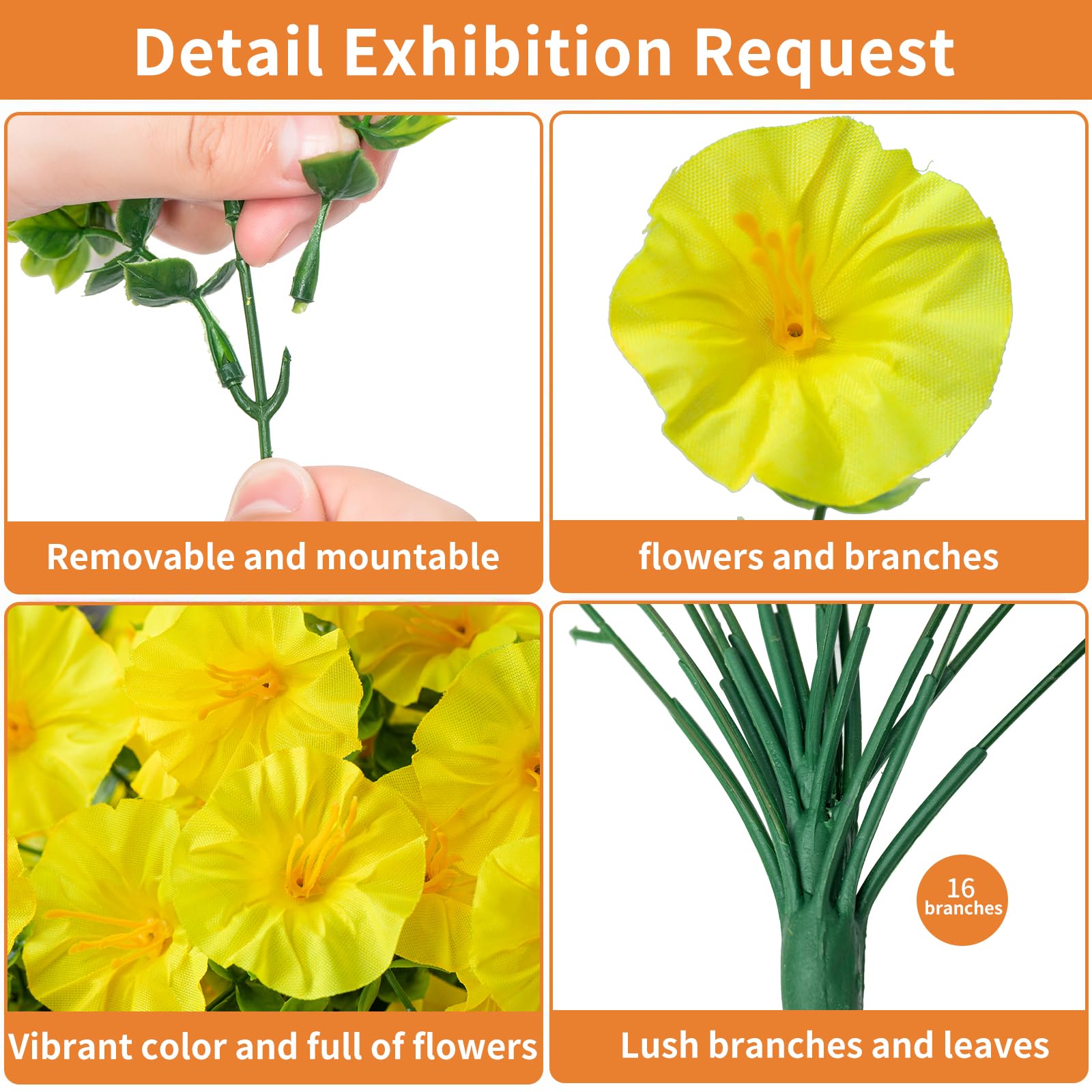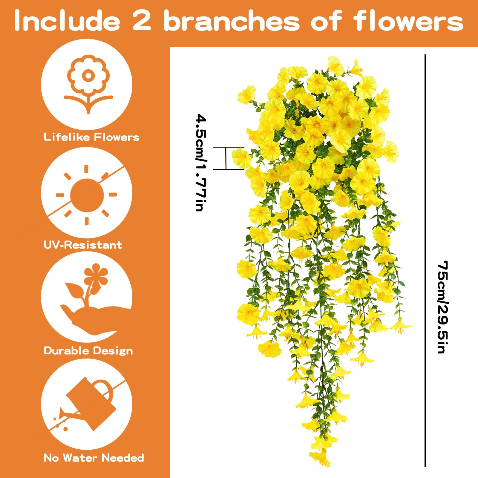 🌸 1. Premium 16-Branch Hanging Display Each set includes 2 bundles of lifelike artificial morning glory flowers with 16 branches per stem, designed for cascading elegance. The lush, multi-layered arrangement creates instant vertical interest in gardens, patios, or porches, transforming flat spaces into dynamic floral tapestries