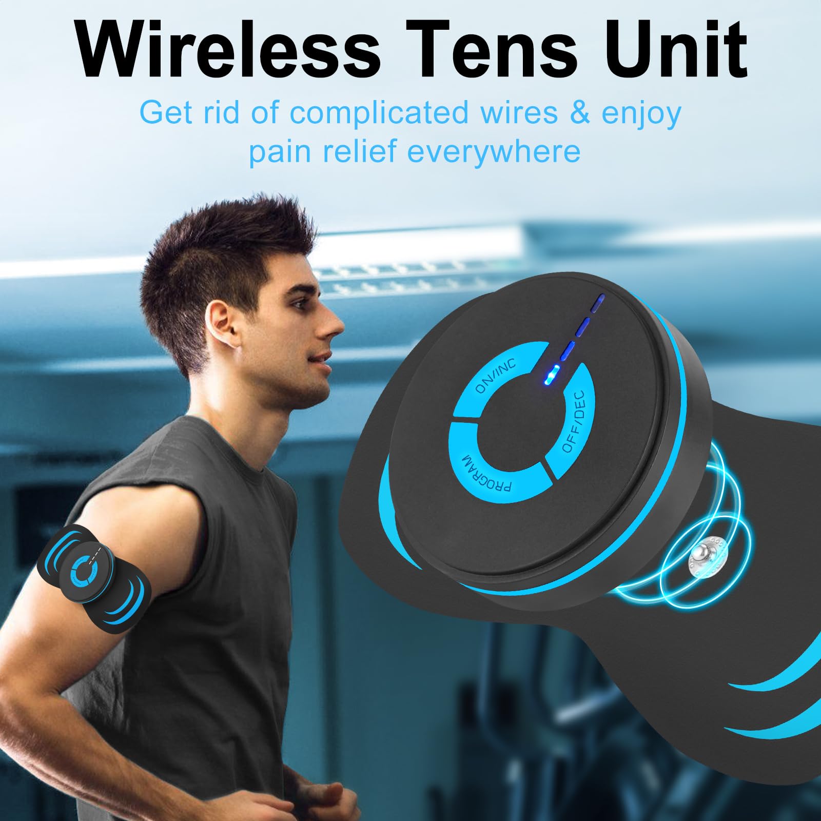 【Wireless design】: Are you still worried about the complicated lines and inconvenience of carrying wireless TENS devices? Don't worry! The compact design of the wireless massager makes it very easy and convenient to carry and use, allowing you to say goodbye to messy wires and easily lost remote controls! No need to worry about being entangled or tripped by wires. You can put the wireless TENS device in your pocket/purse or wear it on a belt clip, and you can do whatever you like while doing a pain-relieving massage.