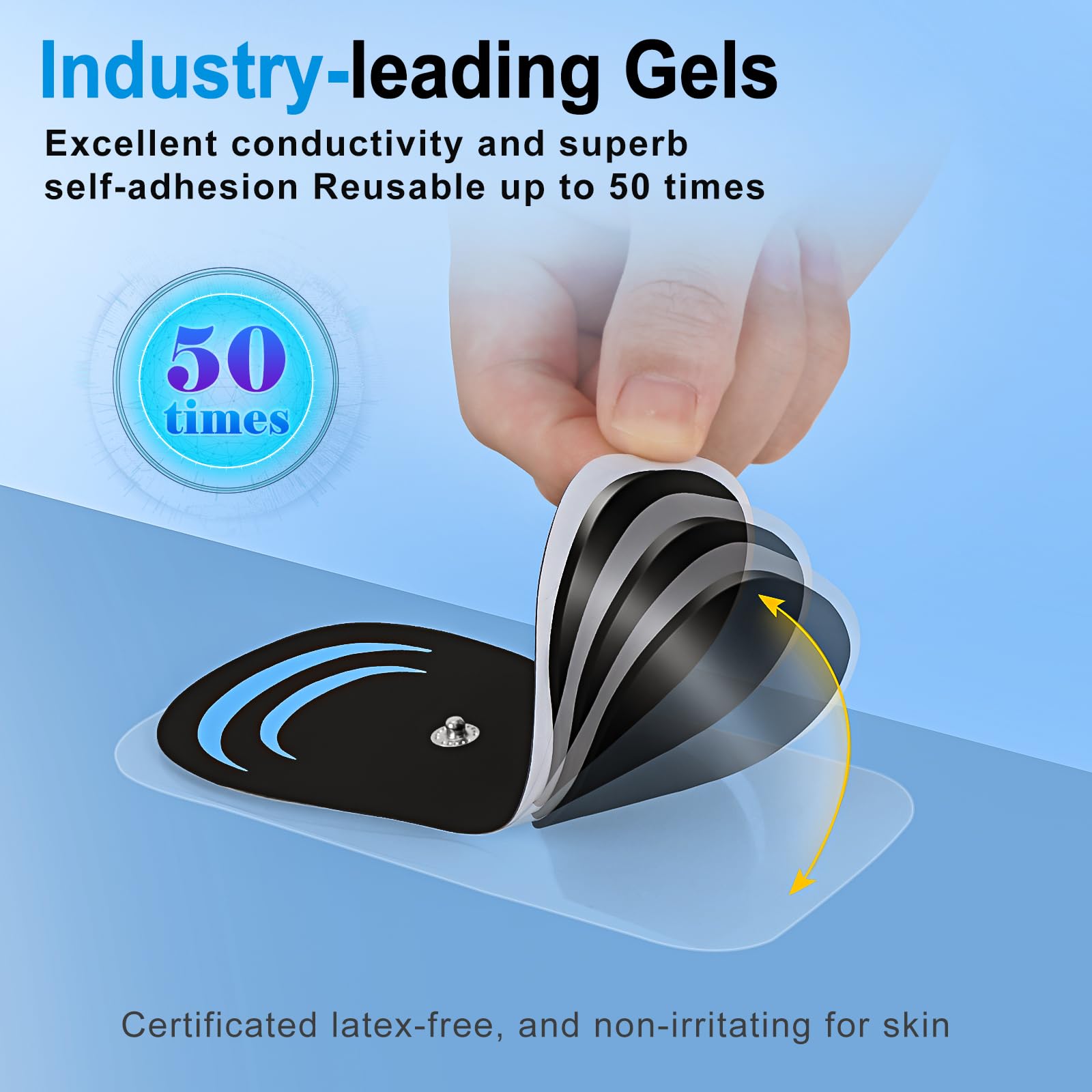 【Stable connection】: If you have a common hobby of sports and massage, please don't miss our product! The TENS Unit muscle stimulator adopts a unique snap-on connector and high-quality self-adhesive gel electrode pads, which makes the connection between the host and the electrode pads very stable. The TENS device electrode pads can be stably adhered to the skin, so that it is not easy to fall off during exercise, while enjoying the comfort and pleasure brought to you by exercise and massage, especially suitable for customers who like sports and massage.