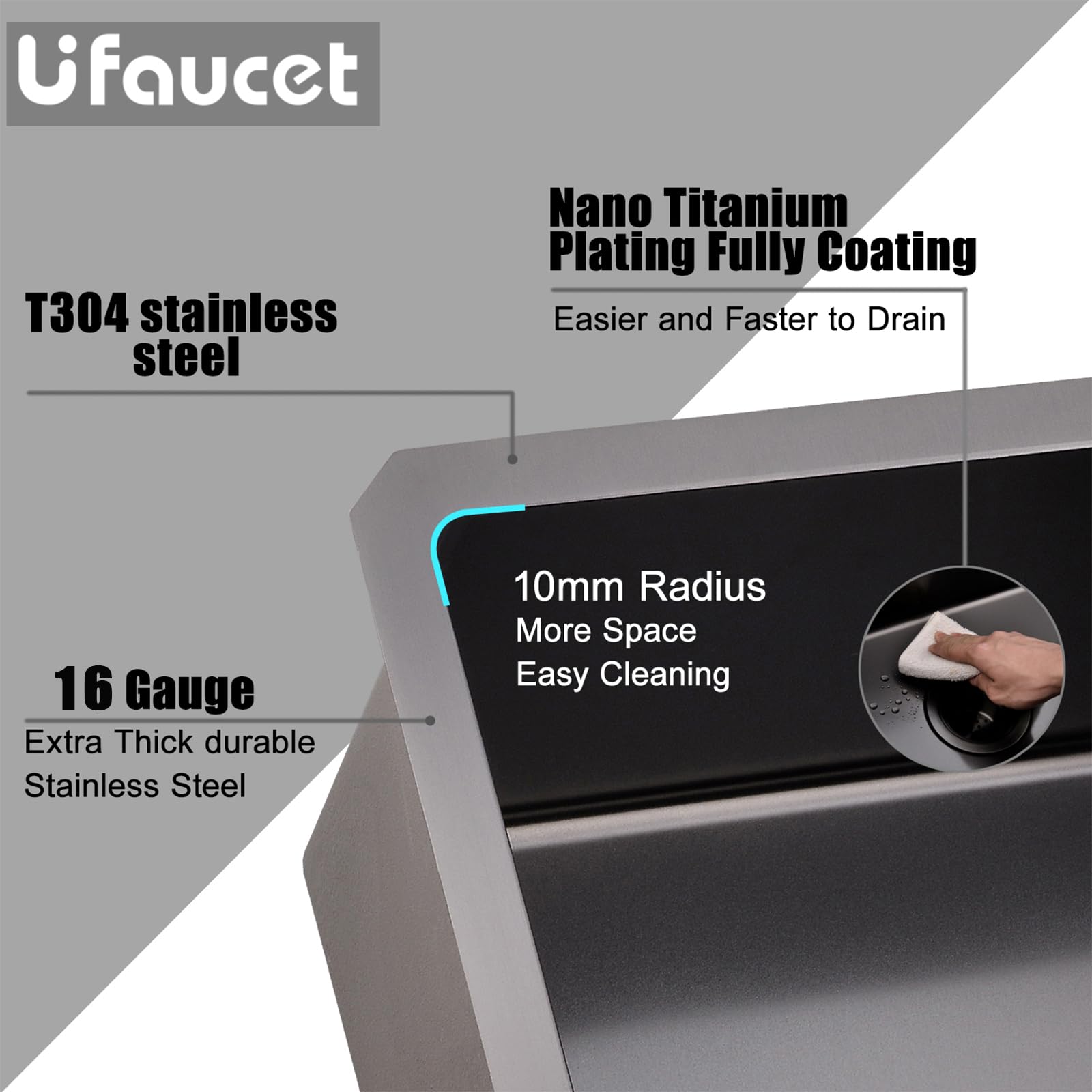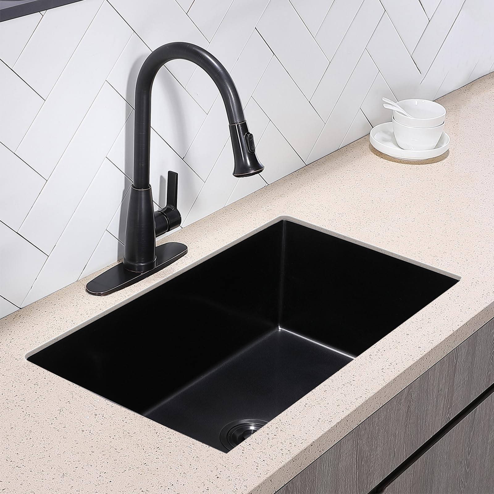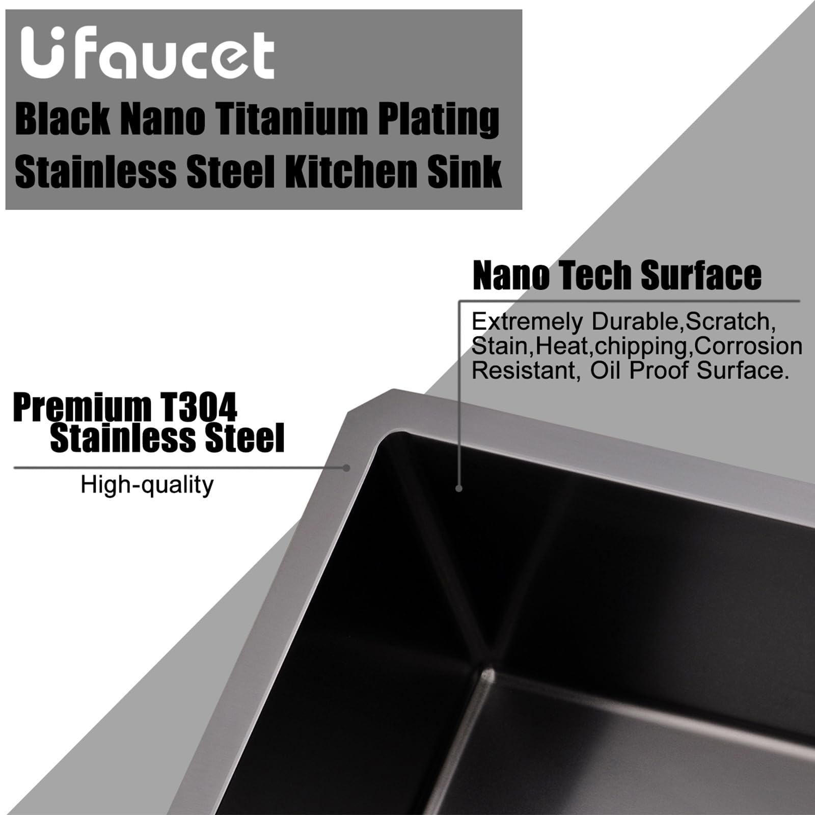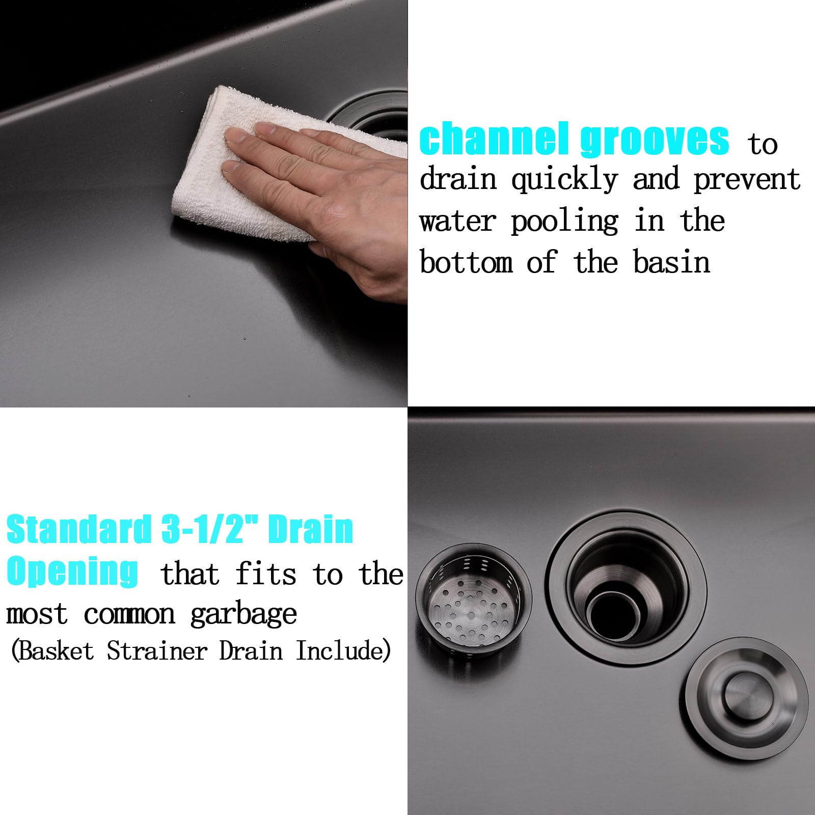 [Premium Quality, Great Value] - The Black Kitchen sink are made of high grade stainless steel with scratch-resistant commercial grade premium satin finish, which is more durable than other sinks and prevents paint peeling. Very durable, wear-resistant, heat dissipating, corrosion-resistant, rust-resistant and easy to clean. Its superior strength ensures a long-lasting service life.