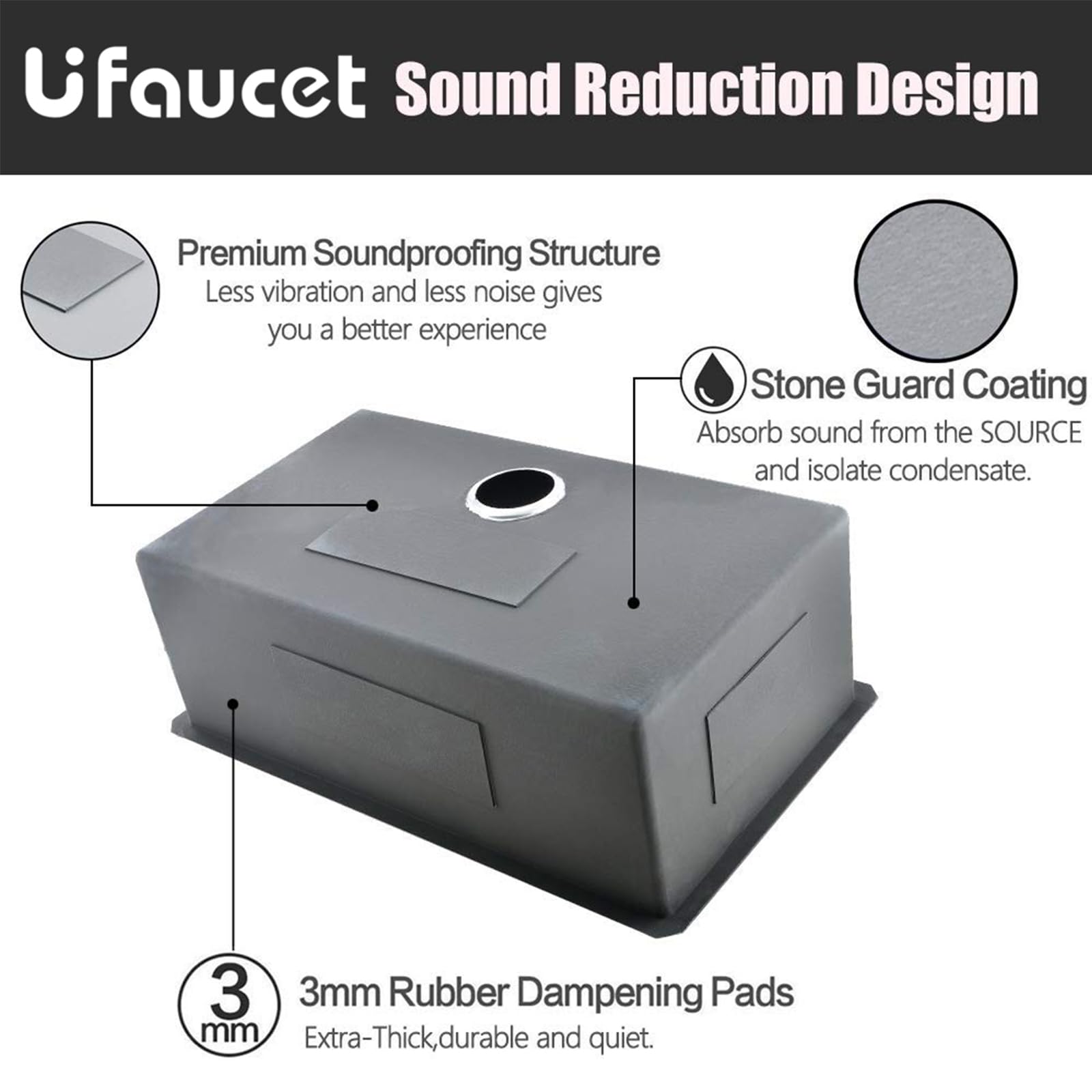 [Protection and Quiet] - The black undermount kitchen sink features multiple larger and thicker rubber pads to absorb noise and protect the cabinets from damage with anti-condensation coating.
