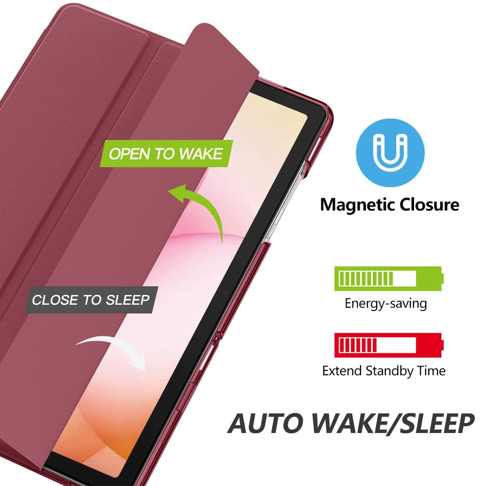 Auto Wake/Sleep: Built-in magnetic strip, automatically wakes or puts your tablet to sleep when the lid is opened and closed. This Galaxy Tab A11+/A9+ Case Protects and extends battery life