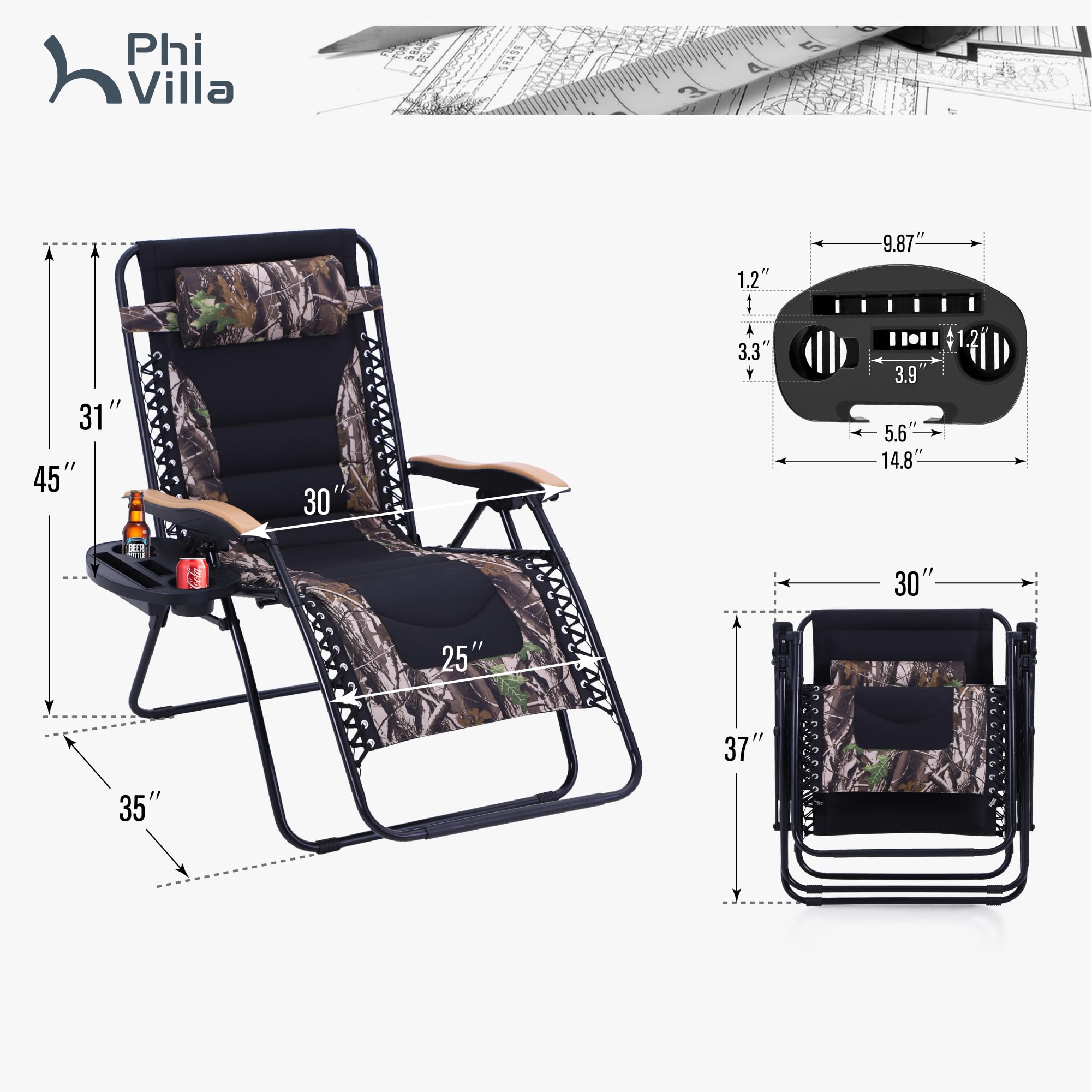 Functionality: The Anti-Gravity Recliner has a locking system for smooth 0 to 170-degree adjustments and an adjustable headrest for comfort. It fits individuals up to 6’2" with a setup size of W30" x D35.4" x H44.9". When folded, it measures L30" x W5.9" x H36", perfect for outdoor use at the patio, beach, or park