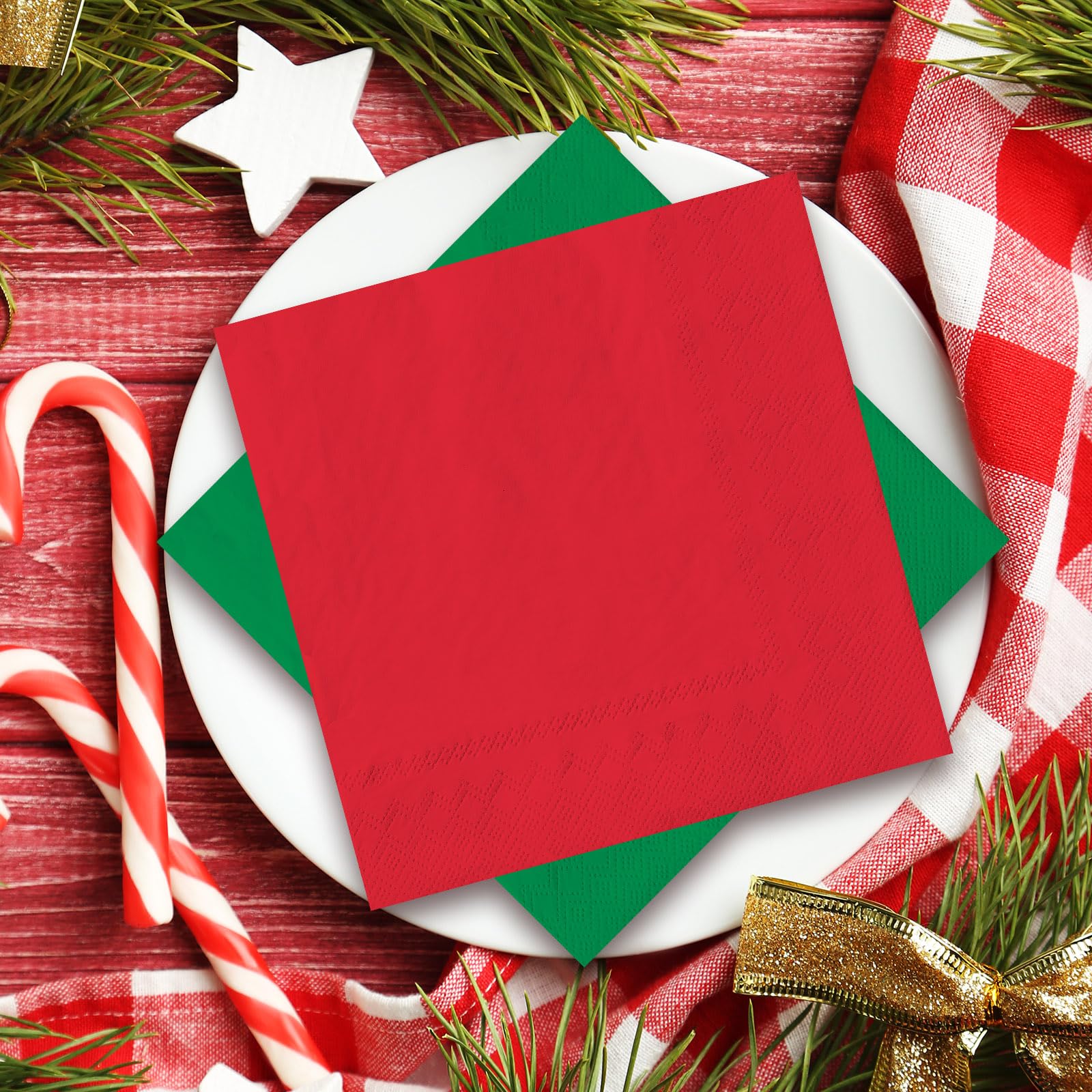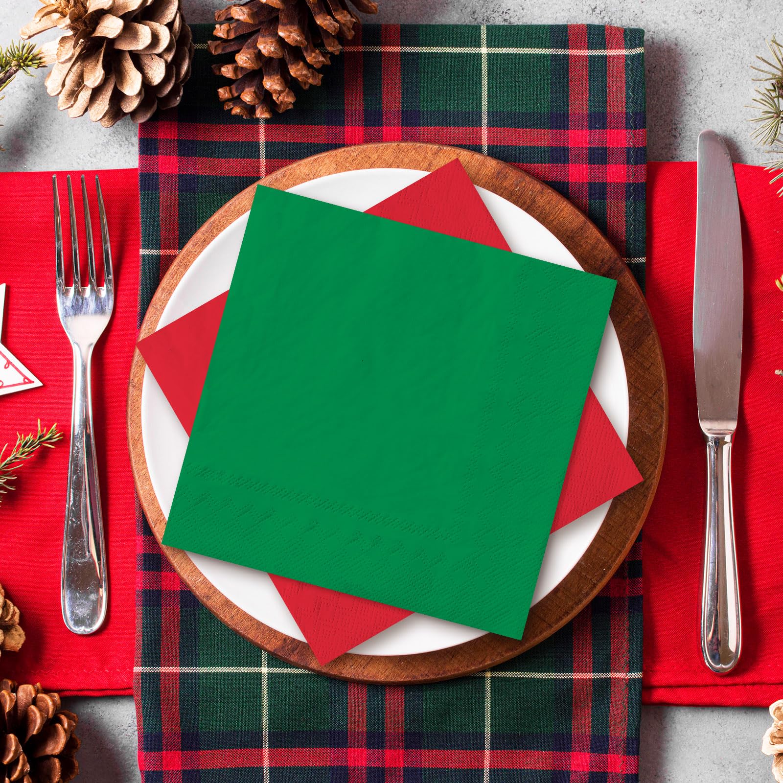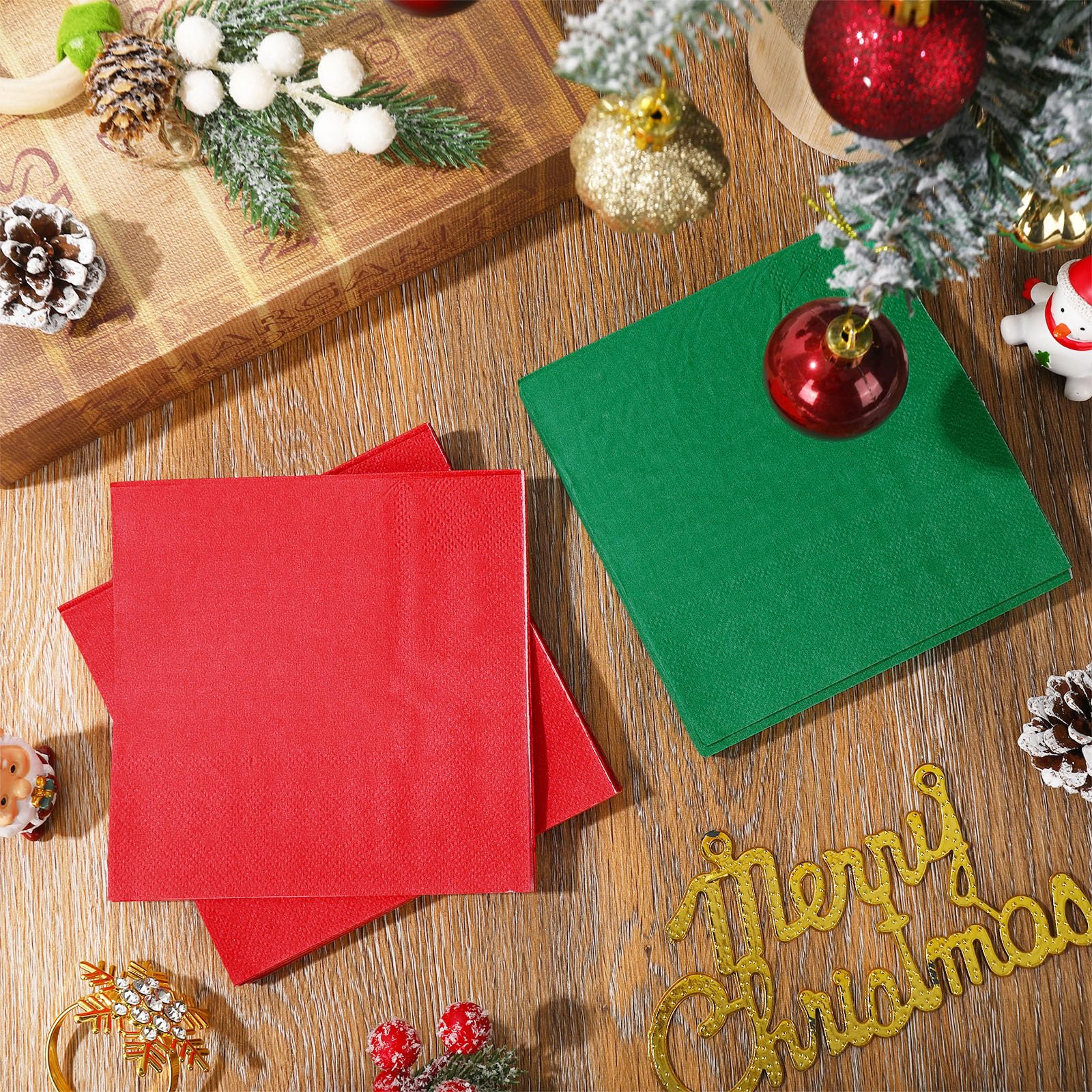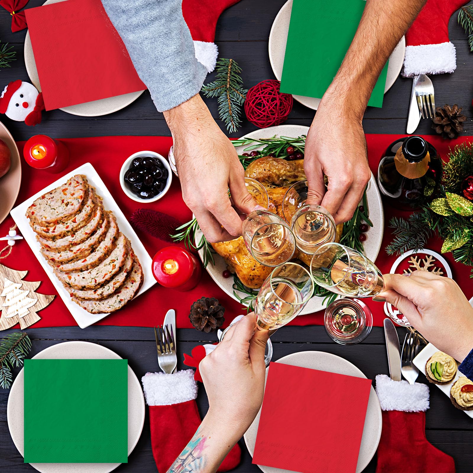 Red & Green Color: Our paper napkins have classic Christmas colors, red and green, perfect table decorations for your holiday party, add a happy atmosphere