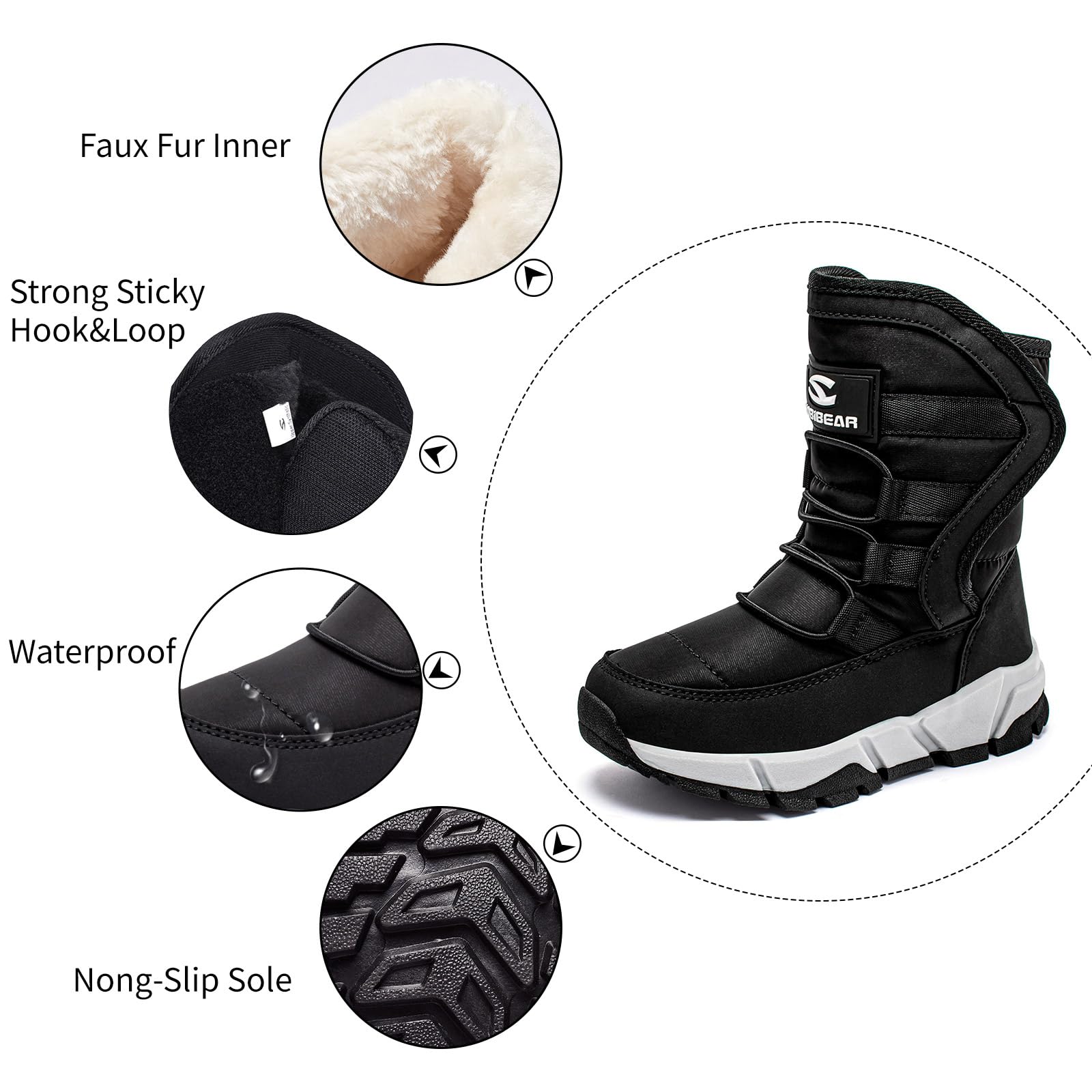 Non-slip sole design allows you to take safety in the snow