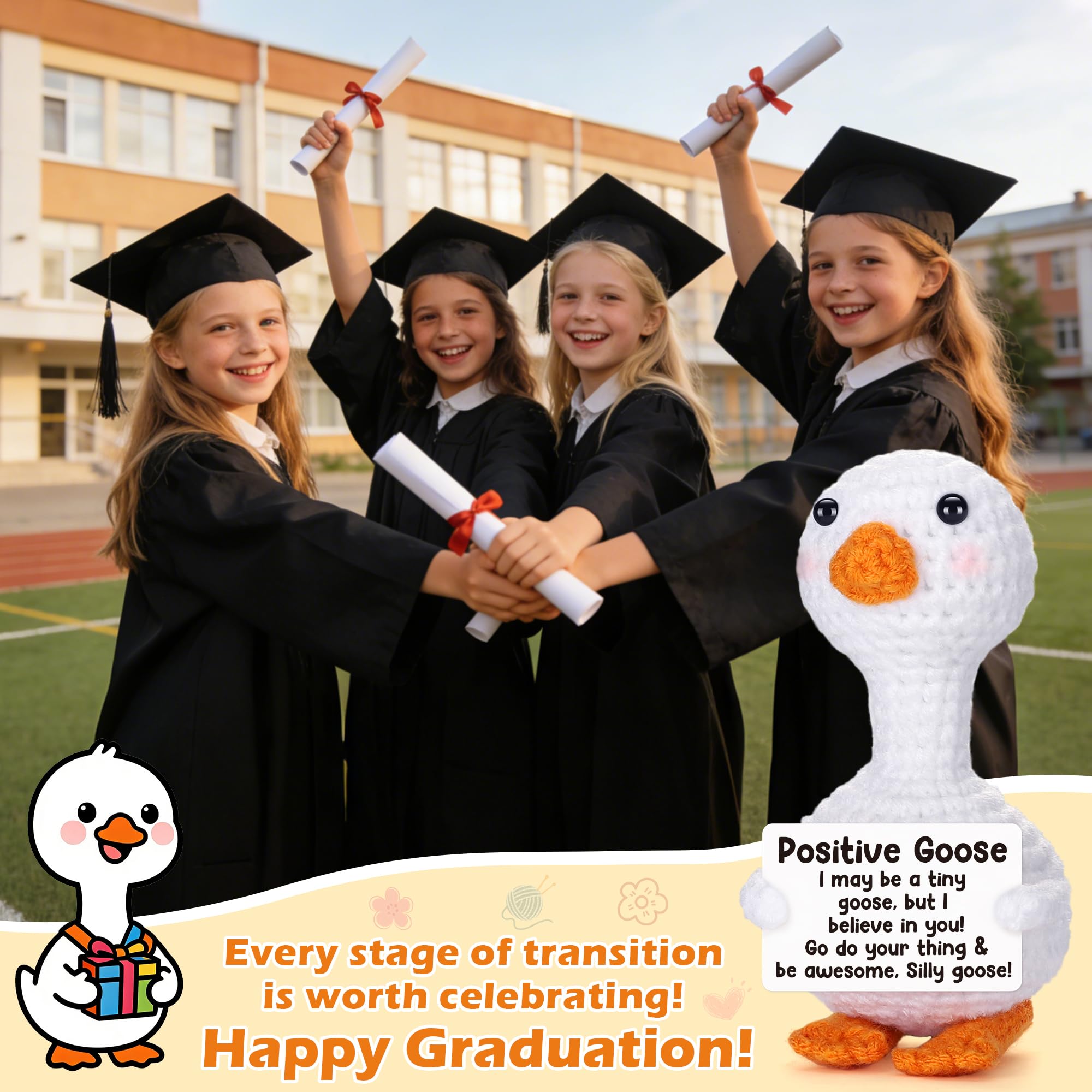 【Friendship & Appreciation Gift for Women 】 Looking for a meaningful gift for best friends or close companions? This positive crochet goose is a heartfelt way to celebrate friendship and appreciation. Ideal for women who support and uplift each other, its playful design and encouraging message make it a thoughtful reminder of confidence and self-belief. A lighthearted yet motivating keepsake perfect for care packages, appreciation moments, or everyday gratitude.