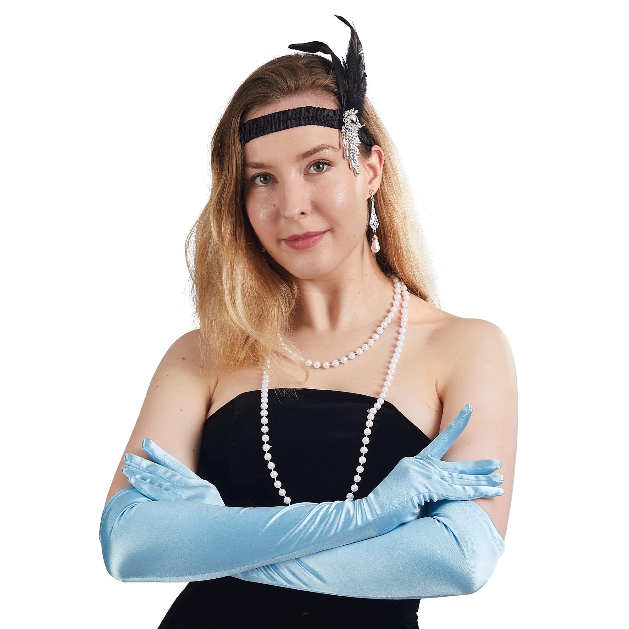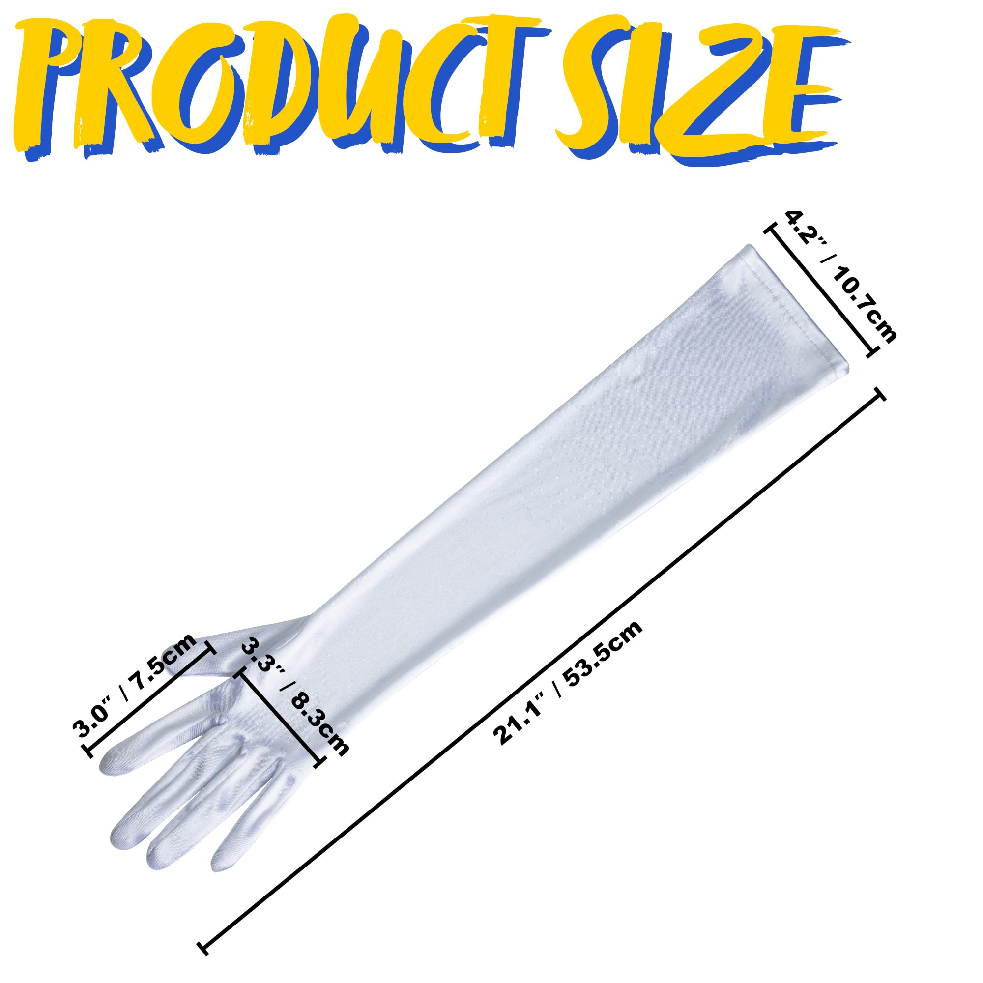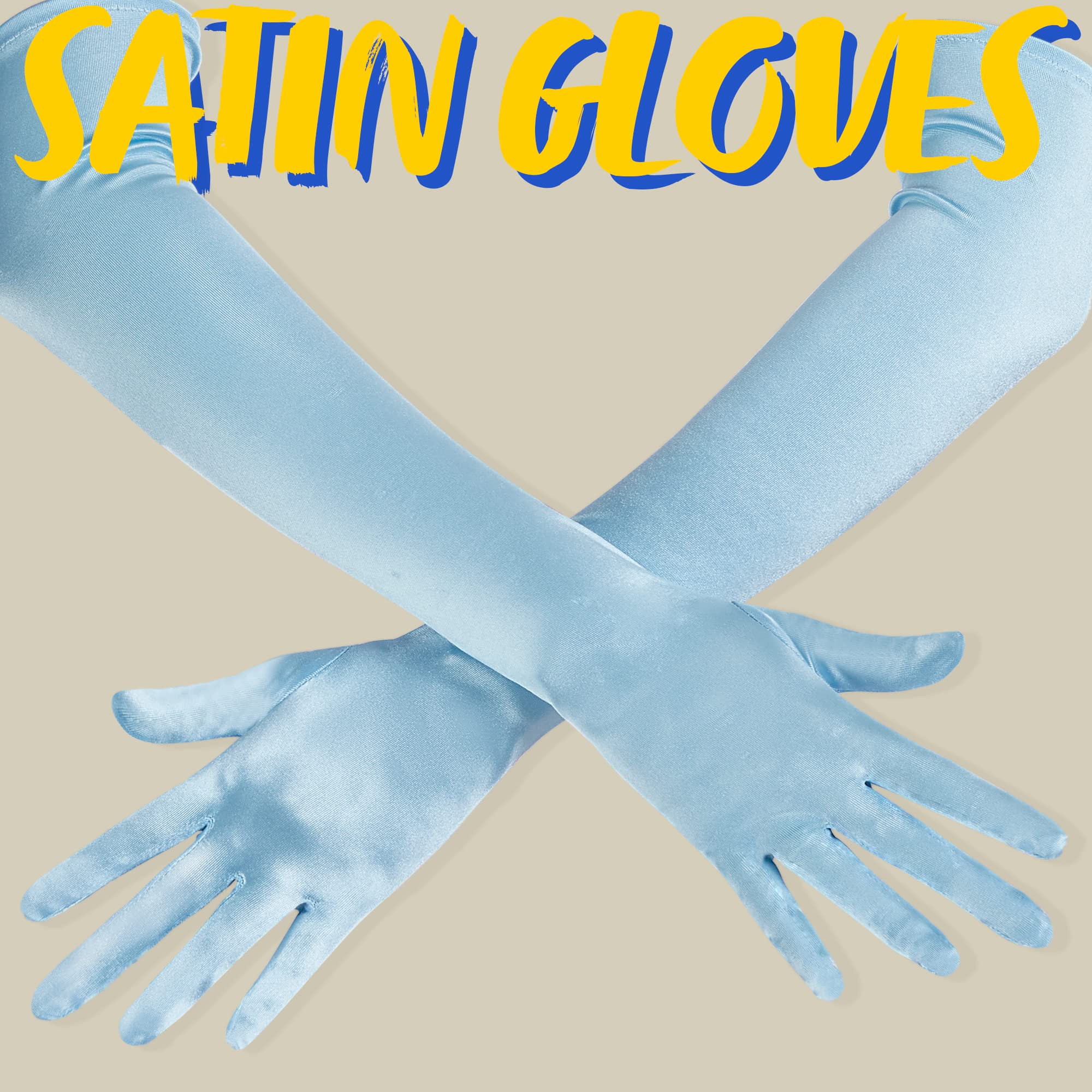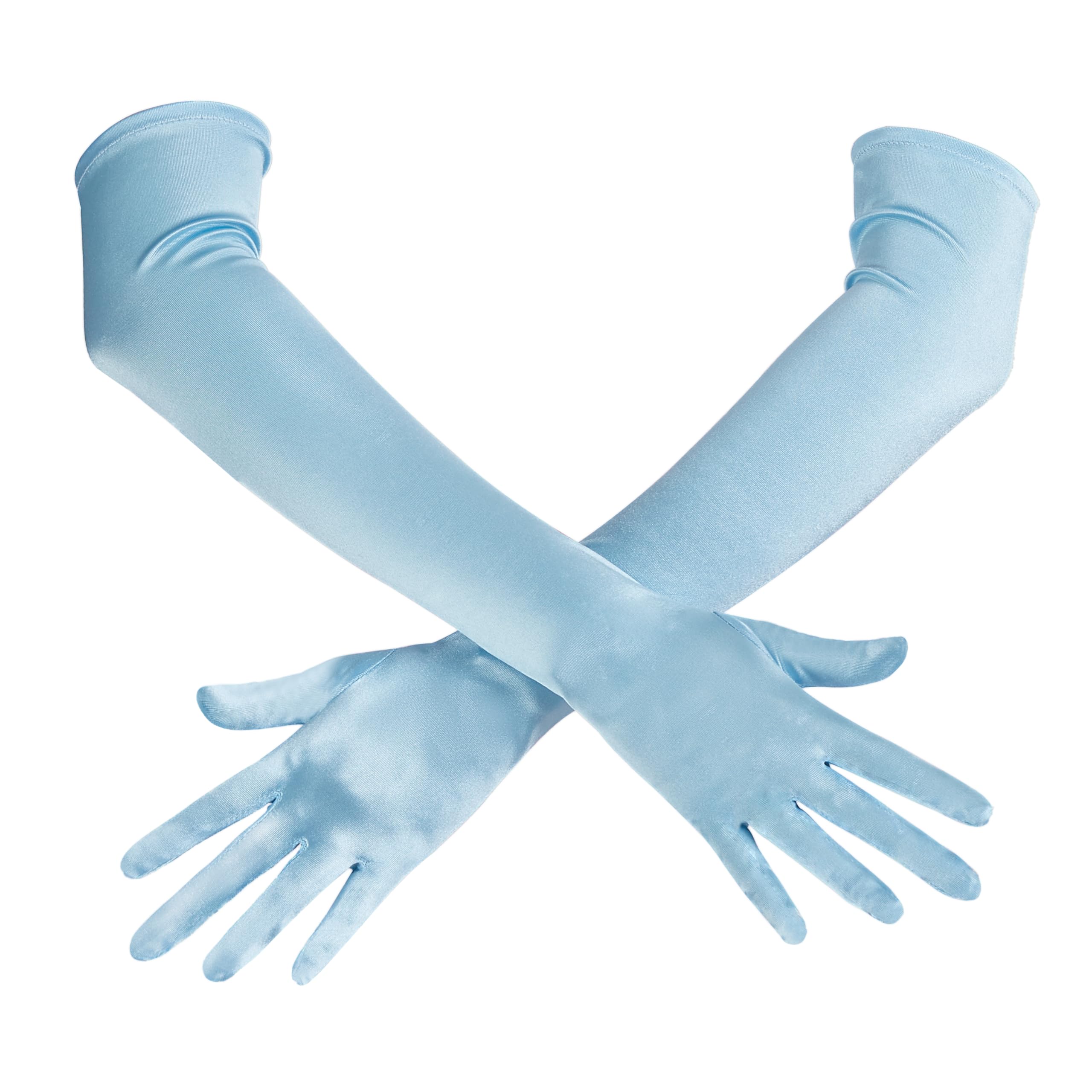 AWESOME HALLOWEEN COSTUME. Size: Our opera satin gloves for women are approximately flat length is 21", width is 4.35". Step back into the 1920s with the long blue satin gloves, perfect for opera, engagement, dancing prom, pageants, cocktail parties, anniversary, birthday party, cosplay, etc.