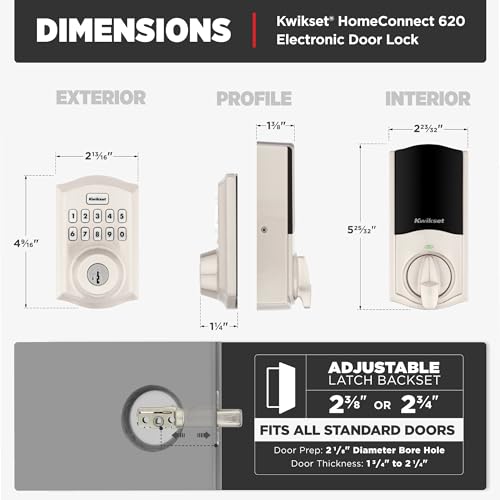 Stay effortlessly connected to your smart lock with the Kwikset® HomeConnect® 620. Designed for convenience and security, this innovative lock offers keyless entry with enhanced S2 security encryption and SmartStart for simplified integration with smart hubs and systems like Ring Alarm and SmartThings. Z-Wave 700 Long Range ensures a direct connection no matter the distance between your lock and hub. Enjoy peace of mind with customizable, automatic locking schedules and an easy installation that only requires a screwdriver.