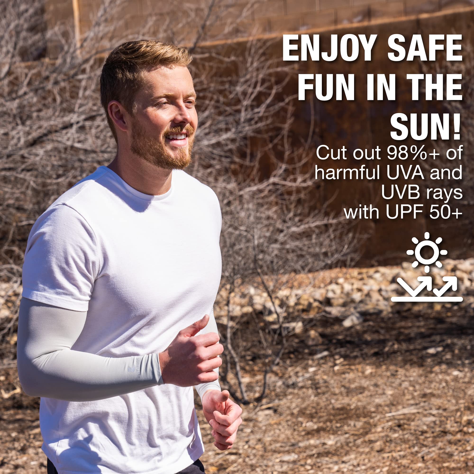 Superior UPF 50+ premium arm sleeves – our innovative UV sleeves for men and women block over 98% of the sun’s harmful UVA and UVB rays, offering full UPF 50+ coverage. These sun sleeves for men and women are ideal for shielding yourself from the sun on hot days – whether you’re playing golf, basketball, baseball, volleyball, running, or cycling.