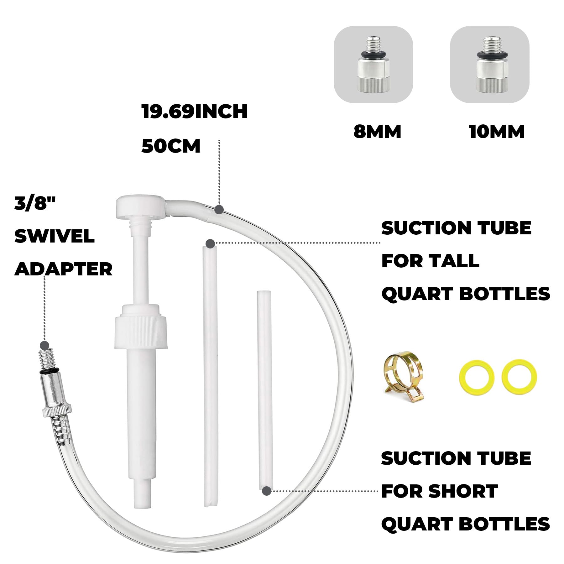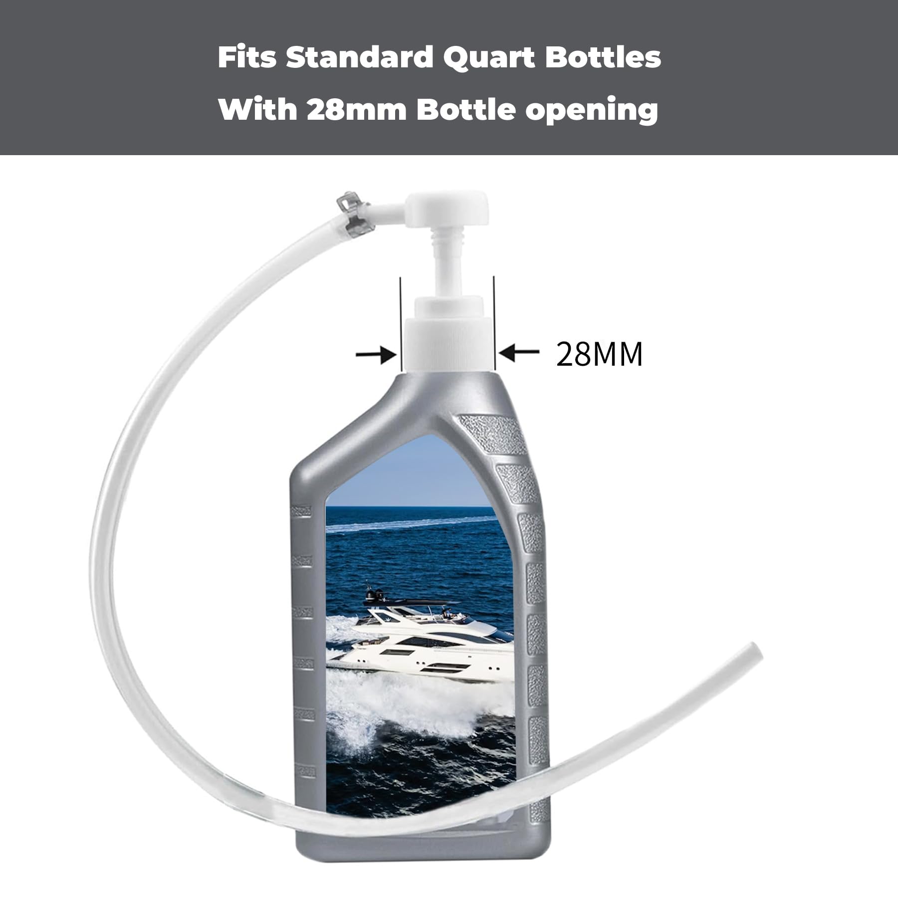 The 8cc gear oil change kit is designed for standard quart bottles with 28mm bottle opening