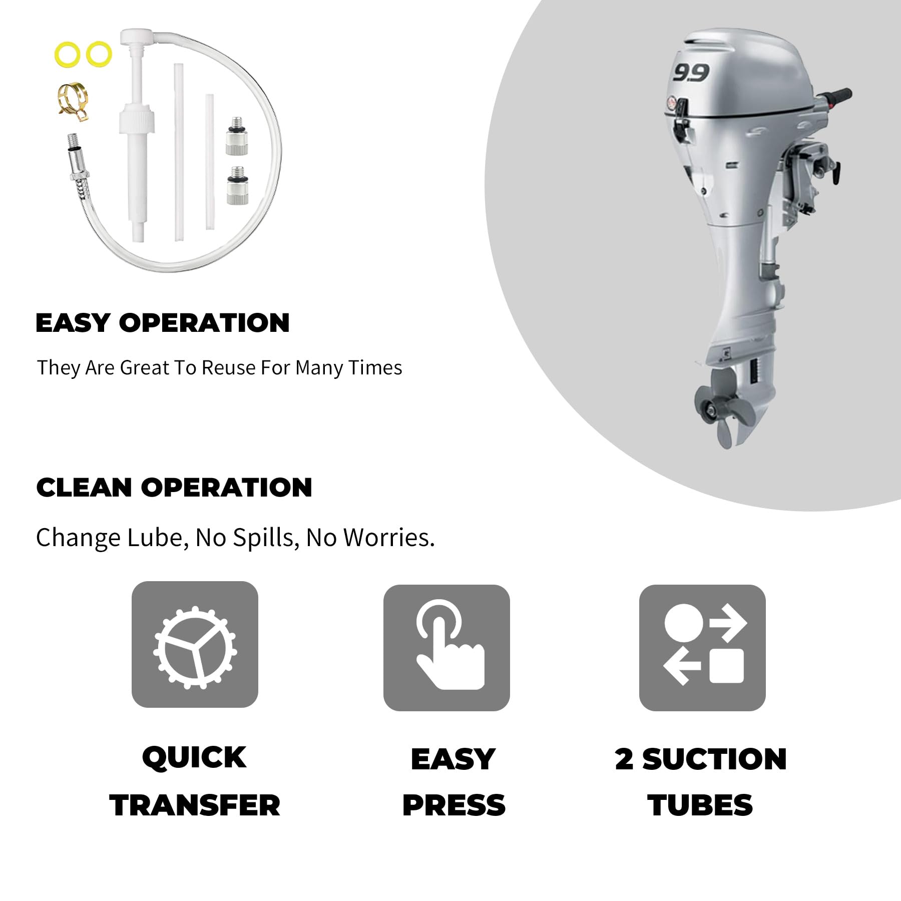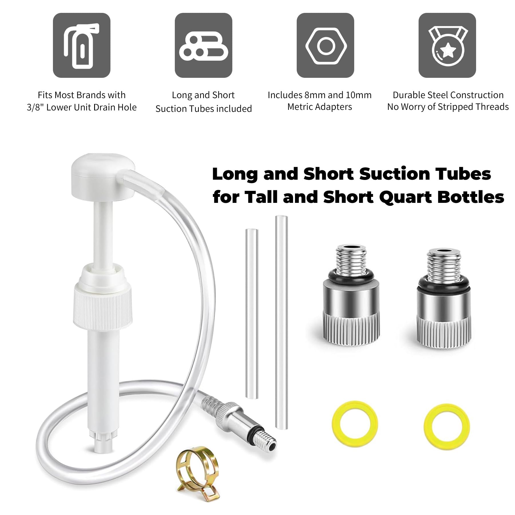 With the 8mm and 10mm adapter, this lower unit gear lube pump is suitable for outboard motors in other countries, such as Yamaha Honda Suzuki Tohatsu