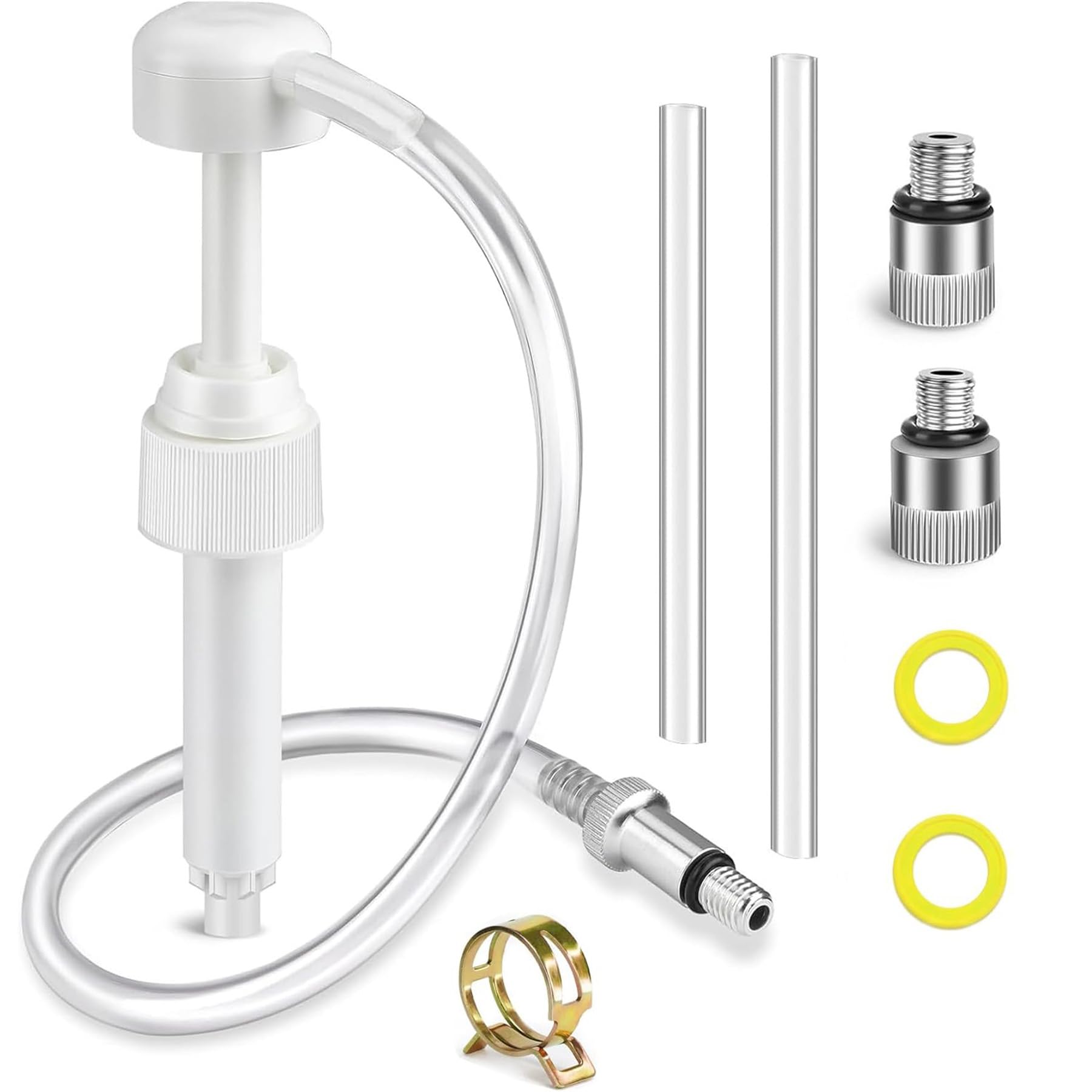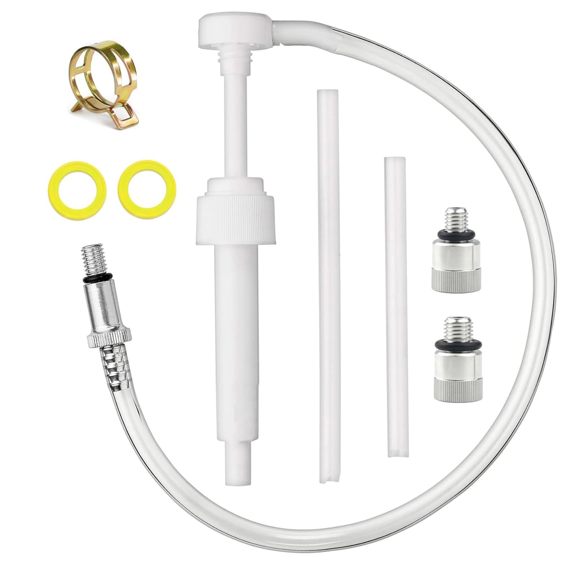 Package contains: oil pump, 50cm flexible hose, 3/8" swivel steel adapter, 8mm adapter, 10mm adapter, rigid suction tubes, clamp and drain screw gaskets 26-830749 26-8M0204693