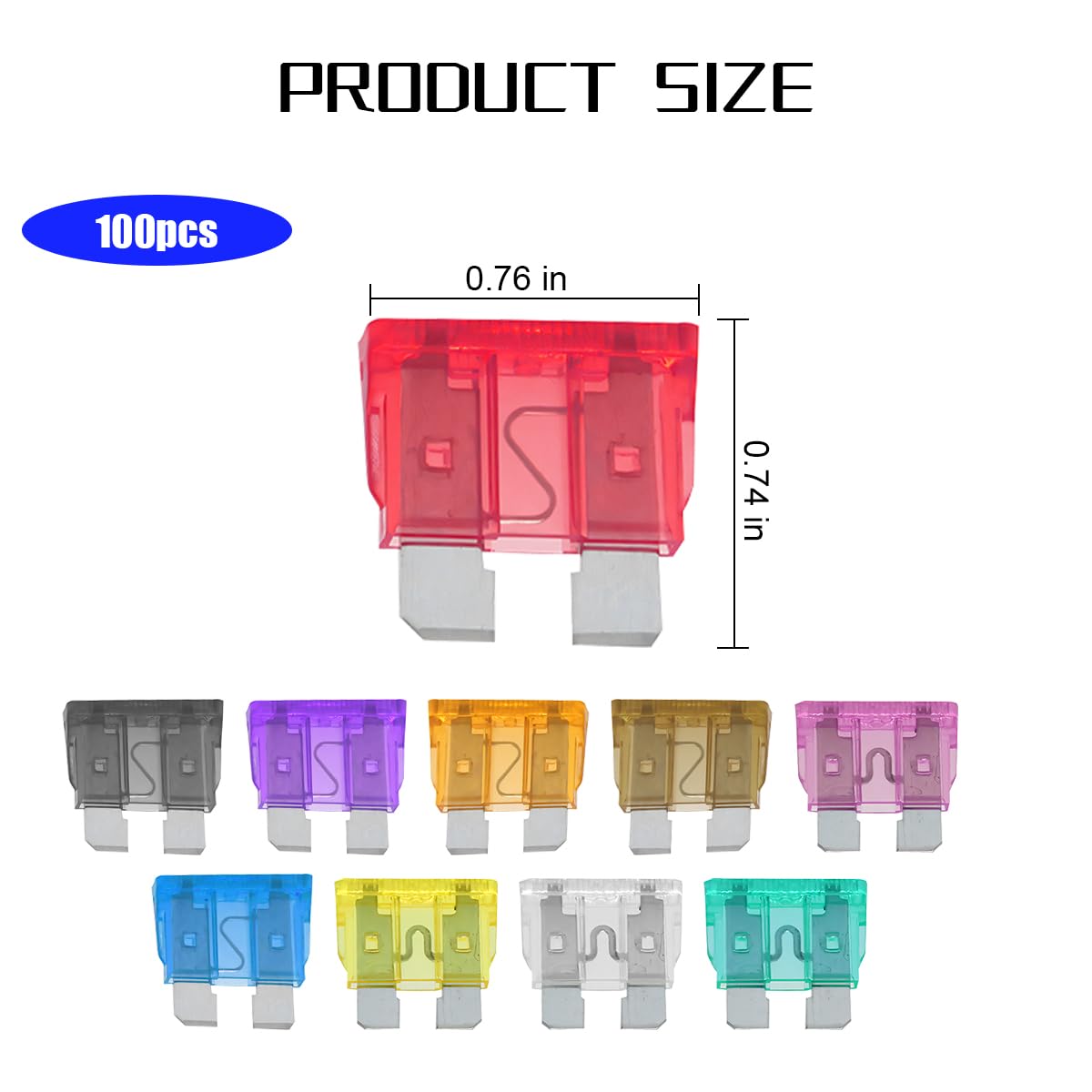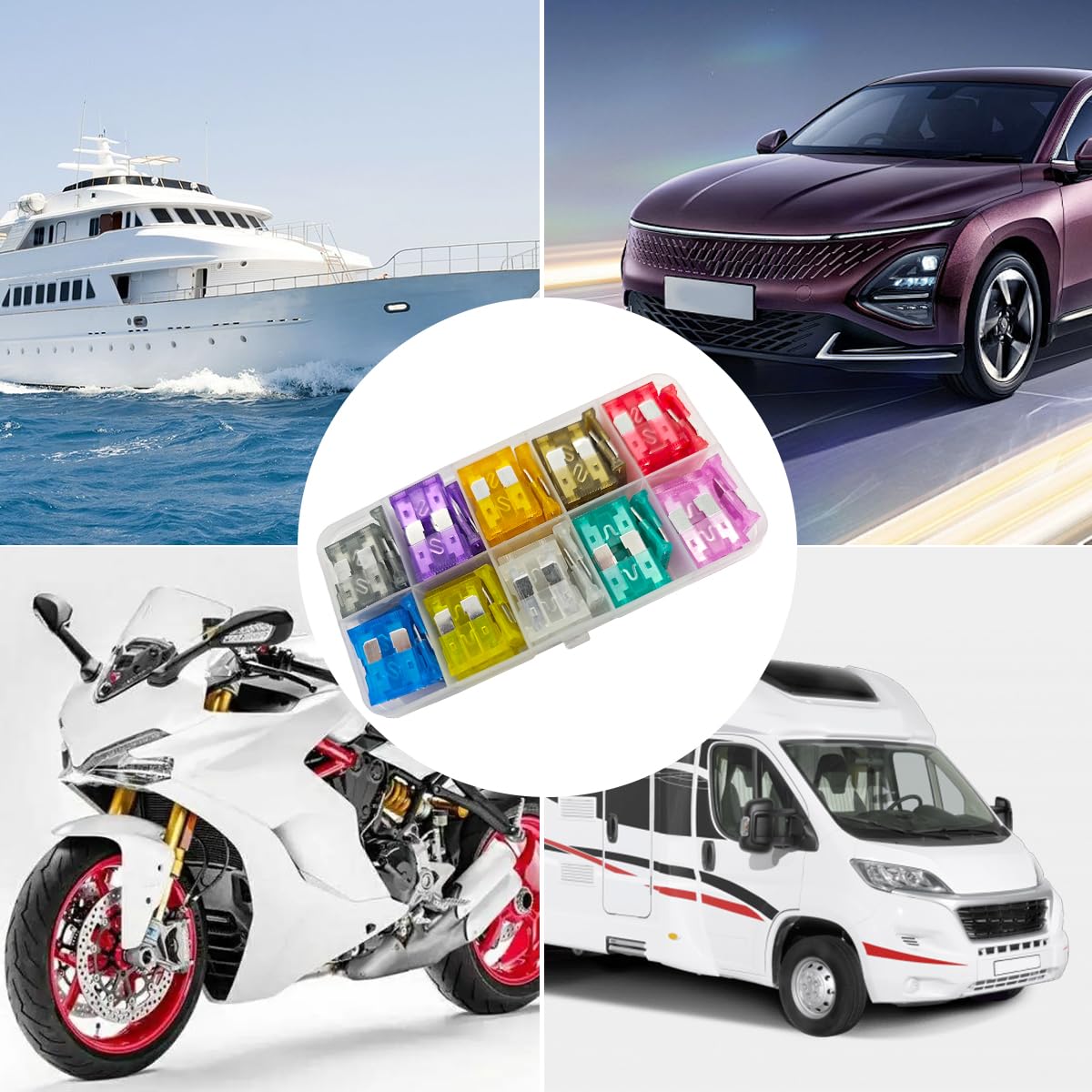 【Wide Application】: This car fuses assortment kit has a wide range of applications. It contains a variety of sizes and models of blade fuses that can be used in most vehicles including cars, trucks, off-road vehicles, ATVs, UTVs, RVs, motorcycles and more. Moreover, it features a variety of sizes that can be adapted to the protection needs of different circuits.