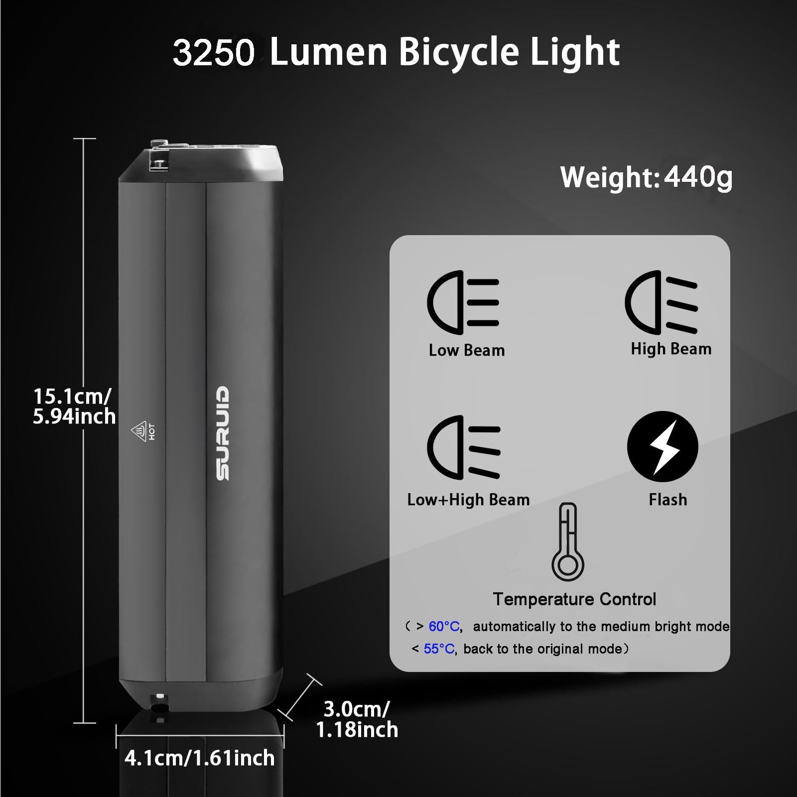 【Advanced Design】The exquisite exterior design makes you stand out in the fleet. IPX-4 waterproof design, not afraid of wind and rain, can be used normally even in heavy rain. Quick release design with a knob at the bottom to remove the light from the bracket in just a few seconds.