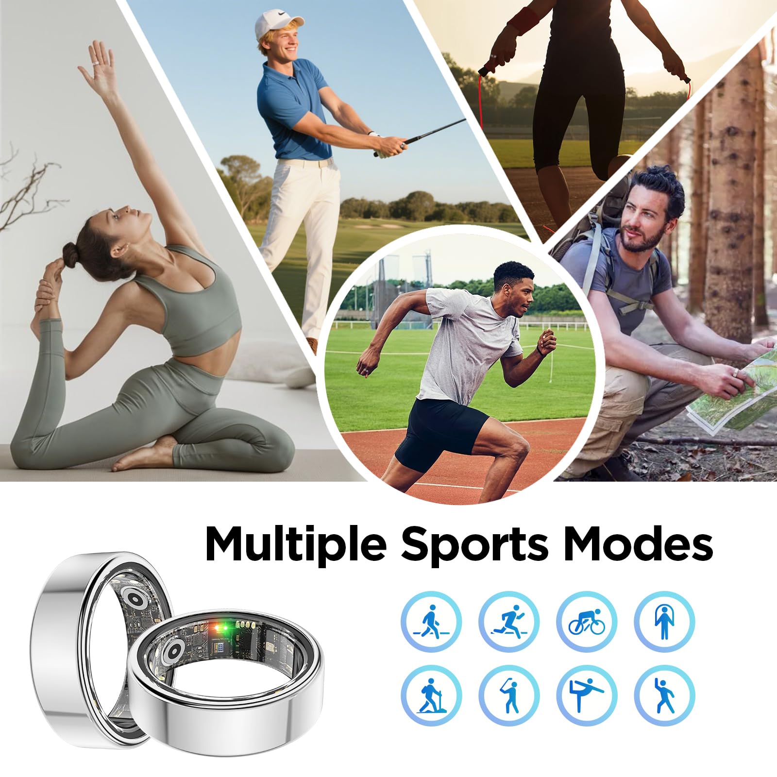 【24/7 Health Monitoring】It's also a fitness ring, automatically tracking your all-day heart rate, SpO₂, sleep quality, step count, and calories burned. It tracks multiple workout modes like running, cycling, jumping rope, walking, hiking, yoga, dancing, and golf, so you can clearly see your progress toward your fitness goals.