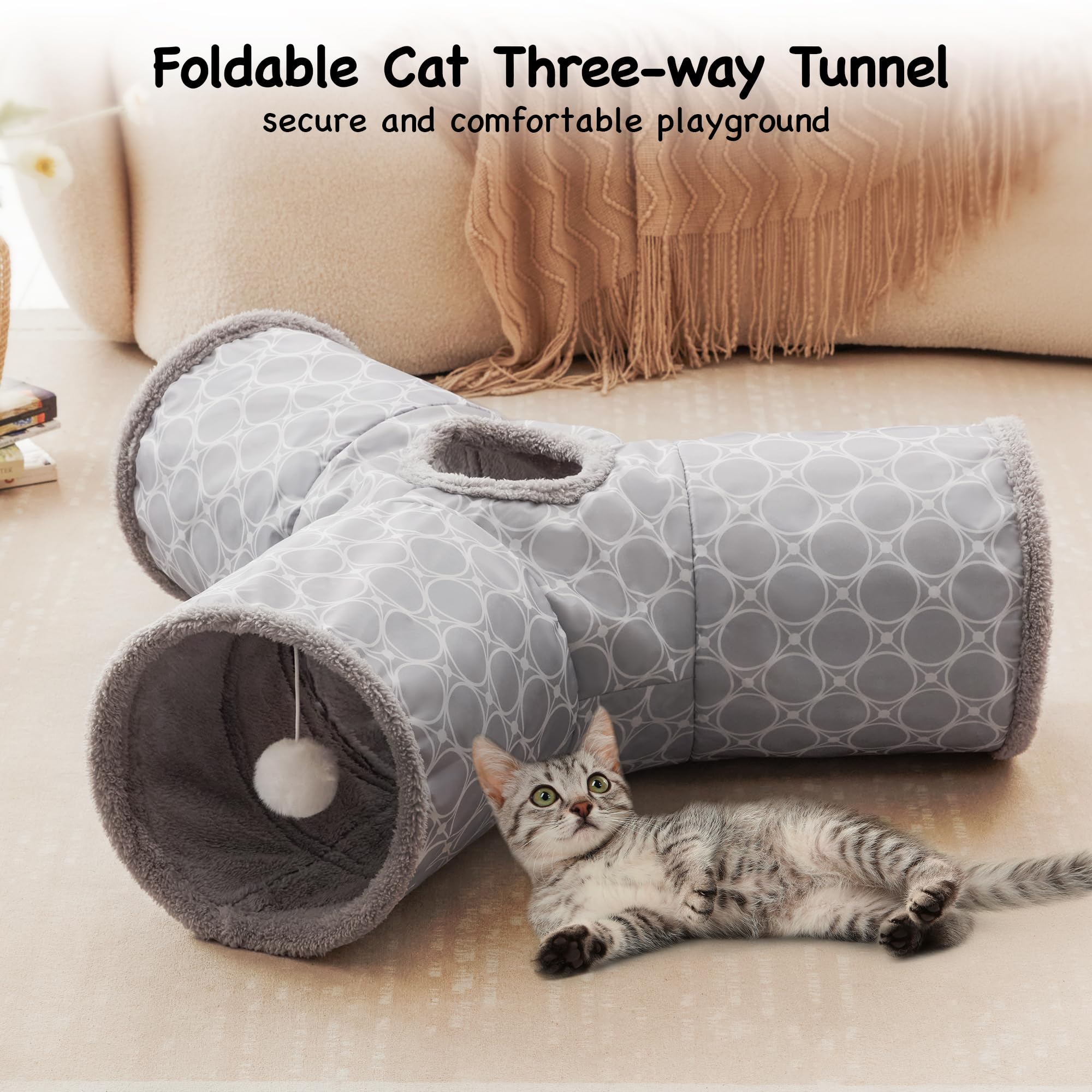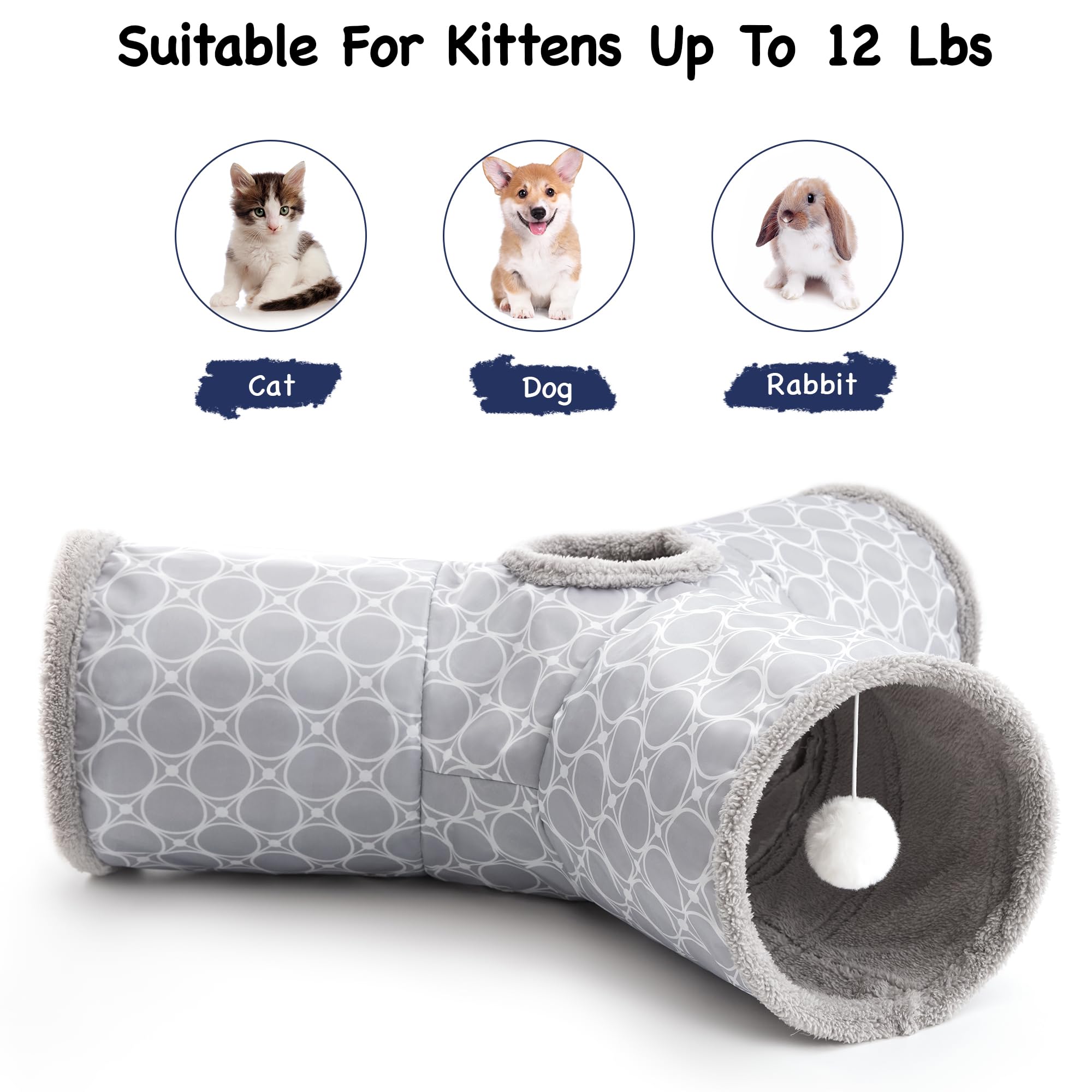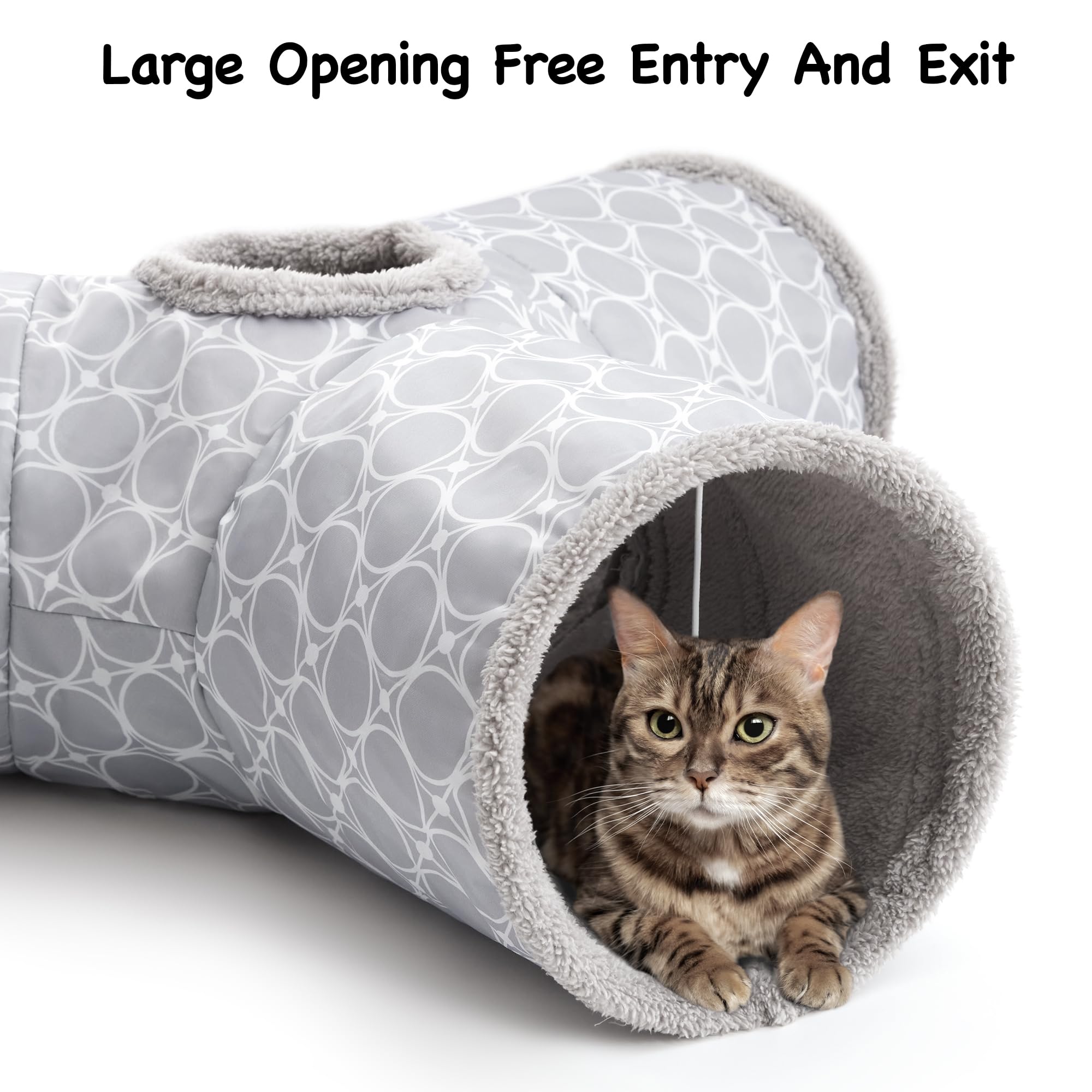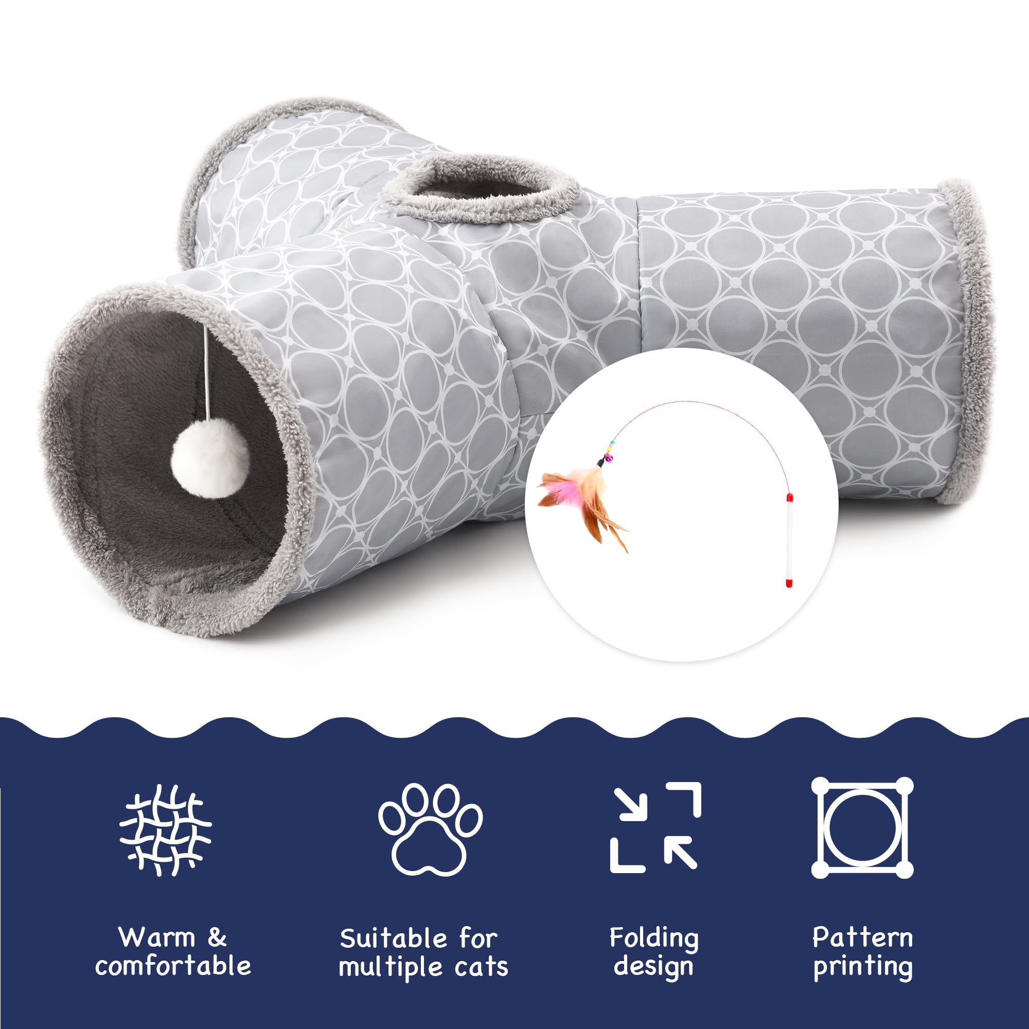 Best Ways to Play: Our cat tunnel with 3 spacious tunnels, peephole & ball toy, this popular cat toy gives your kitty more ways to have fun. Provides hours of exercise & self-amusement. The fleece lining inside makes it warmer and more comfortable.