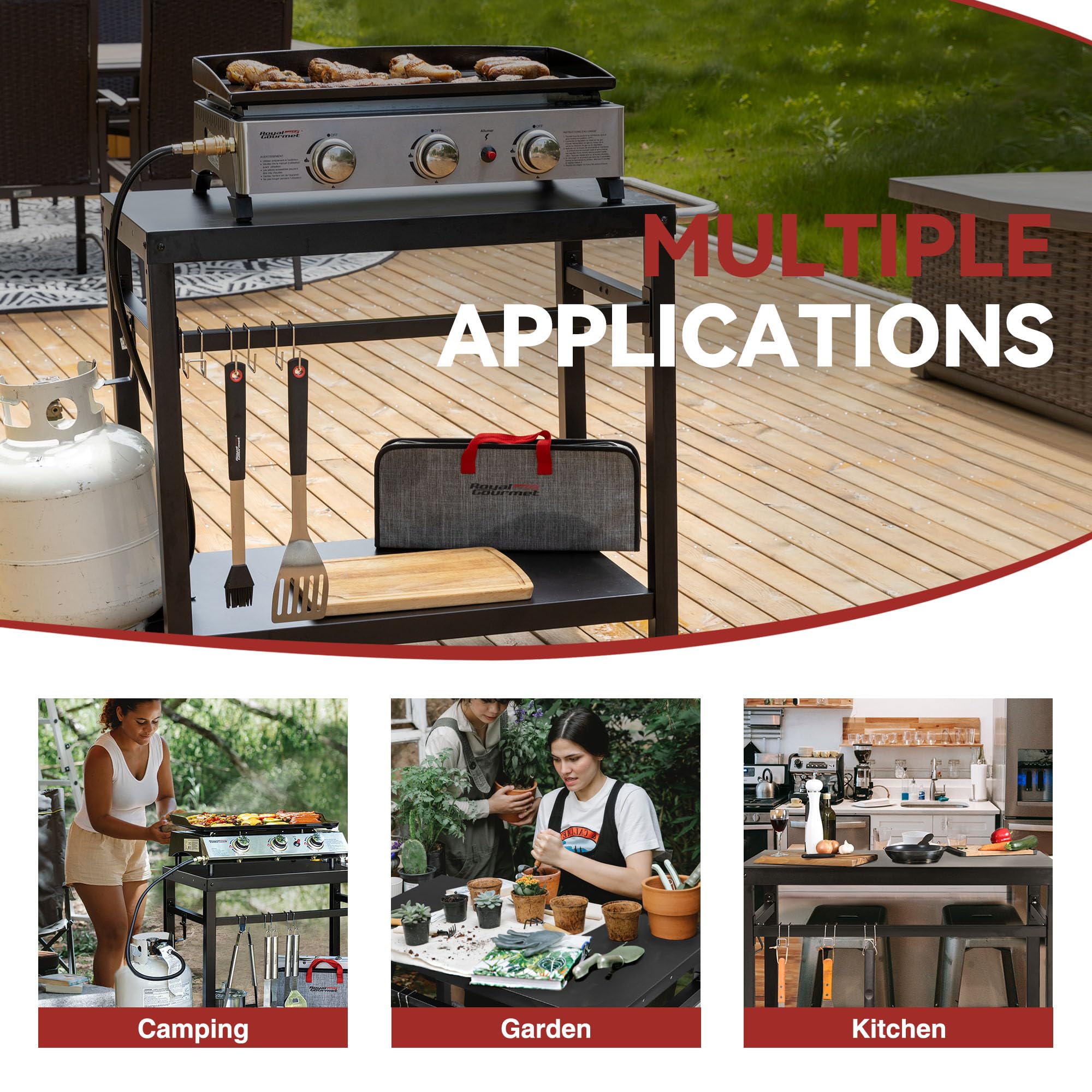 Multifunctional: This worktable can be used indoors as kitchen island table; outdoors as BBQ grilling table, grill cart, griddle stand, pizza oven stand, food prep station, potting bench and so on